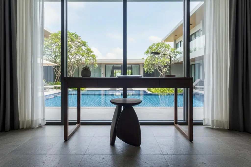 A three-legged wooden stool that looks like the arrangement of rock to form a structure. This work was born from the skill and instinct of a master craftsman where designers give the artisan a chance to create works without a clear plan until becoming a piece that reflects the extreme woodwork craftsmanship. And the texture of the stool is not polished to be smooth. It is the intention of the designer who wants this piece to be able to express imperfections to reflect the work that was made by hand as much as possible. This will allow us to distinguish handicraft from industrial work.Moonler’s products are mainly made of Chamchuri Wood (known as Acacia or Monkey Pod) which are solid wood and solid wood is a living material. It may move according to different weather conditions and environment humidity. It is normal for wood to increase and decrease its own dimensions according to the climate. Variations of 1-2% on solid wood table tops or surfaces such as skin crack or movement caused by small differences in thickness between the various pieces of solid wood glued together to form the table top should be considered natural and typical of solid wood and cannot represent a reason for claims. Also each and every wooden piece of furniture features unique color shades and grains. Natural crack or holes should be accepted as it is part of the charming of solid wood characteristic.