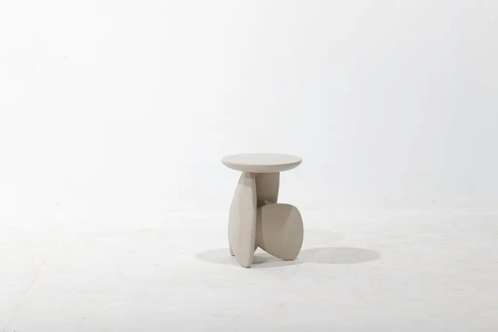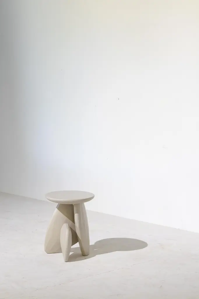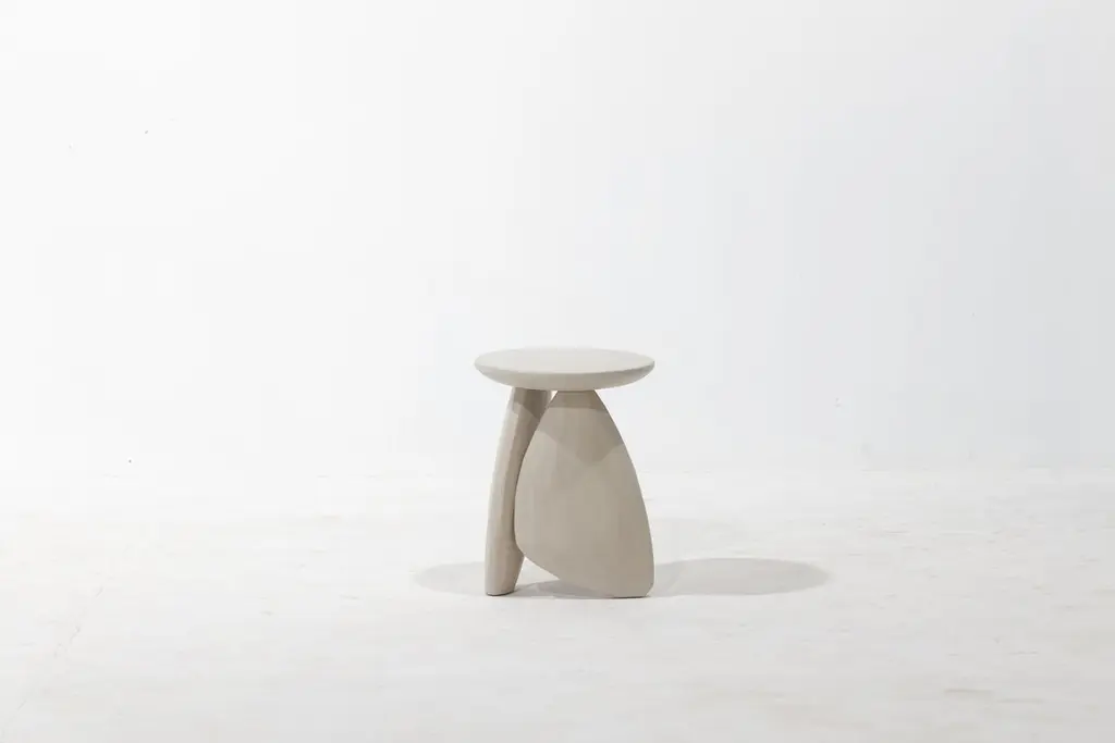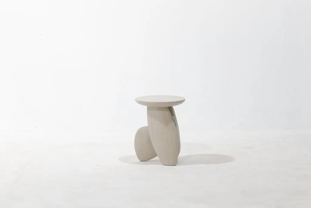 Pebble Stool Type 01, Stone White Monkey Pod Wood