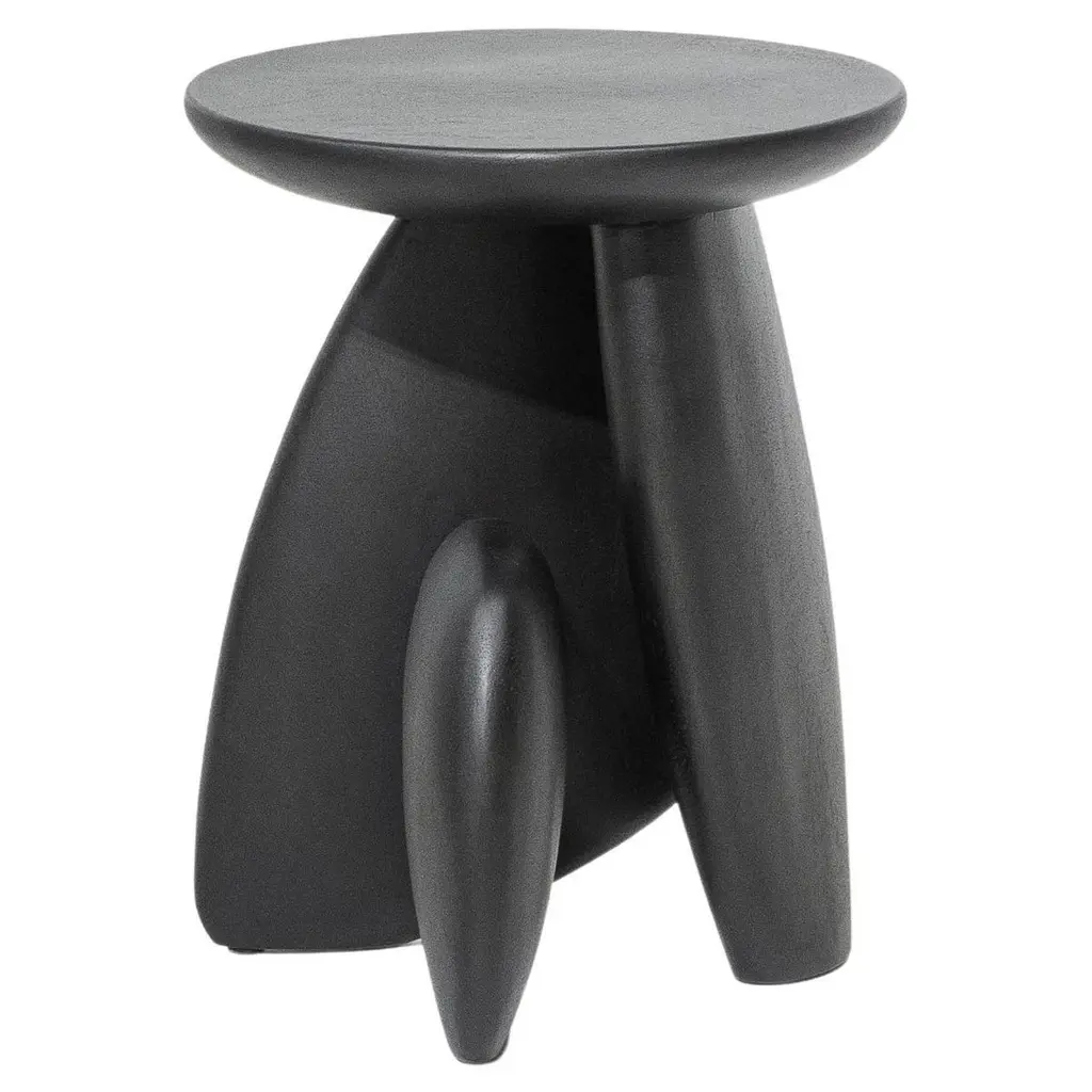 A three-legged wooden stool that looks like the arrangement of rock to form a structure. This work was born from the skill and instinct of a master craftsman where designers give the artisan a chance to create works without a clear plan until becoming a piece that reflects the extreme woodwork craftsmanship. And the texture of the stool is not polished to be smooth. It is the intention of the designer who wants this piece to be able to express imperfections to reflect the work that was made by hand as much as possible. This will allow us to distinguish handicraft from industrial work.Moonler’s products are mainly made of Chamchuri Wood (known as Acacia or Monkey Pod) which are solid wood and solid wood is a living material. It may move according to different weather conditions and environment humidity. It is normal for wood to increase and decrease its own dimensions according to the climate. Variations of 1-2% on solid wood table tops or surfaces such as skin crack or movement caused by small differences in thickness between the various pieces of solid wood glued together to form the table top should be considered natural and typical of solid wood and cannot represent a reason for claims. Also each and every wooden piece of furniture features unique color shades and grains. Natural crack or holes should be accepted as it is part of the charming of solid wood characteristic.