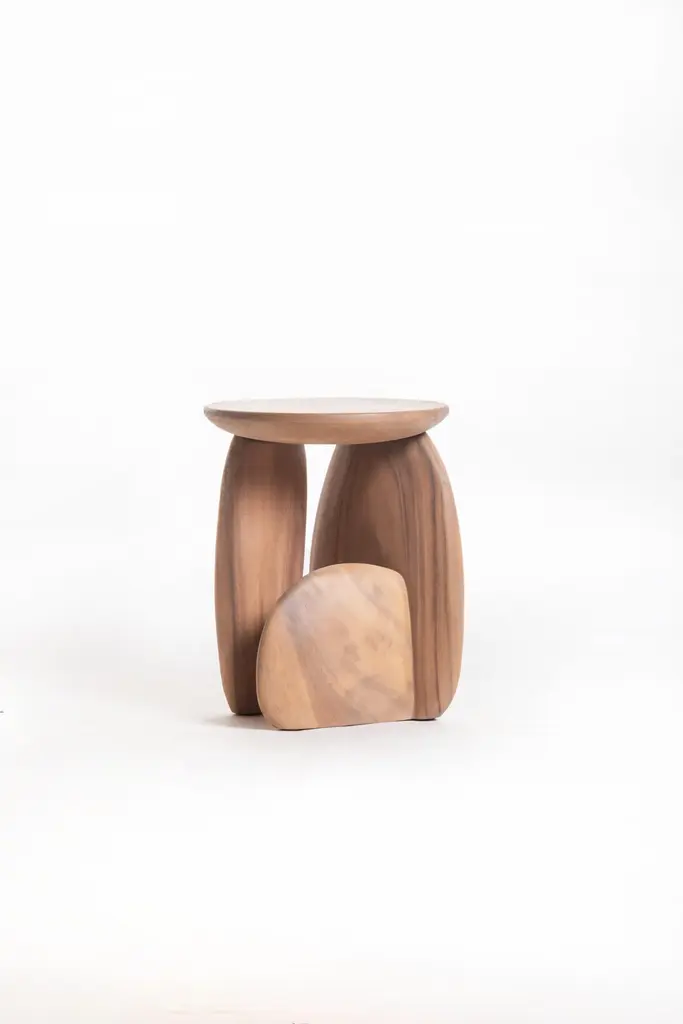Pebble Stool Type 02, Natural Light Monkey Pod Wood