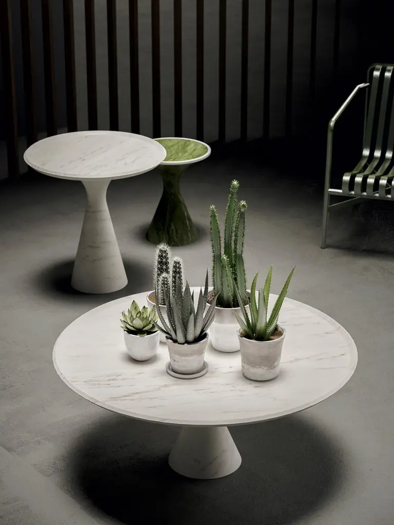 Pedina Stool by Kreoo Designed by Enzo BertiDimensions: Ø 36 x H 43 cm.Base: Ø 25 cm.Materials: Grigio St. Marie marble.Available in different marble options. Please contact us.The idea of creating a collection of interior design objects – seats and coffee tables – in which the intrinsic hardness of marble is mitigated by the sinuosity of the shape has led the Pedina-Torre family designed by Enzo Berti.The elements remind the silhouette of the famous board game, with bases with tapered conical sections that emphasize the natural material, which can be selected from eight types in the catalog.The top is circular and features a special, embossed edge that is available in two sizes in the Torre table line and three variations for Pedina.It has a beveled top, to ensure the best ergonomics also for sitting, and its rim can be made with a contrasting marble, for a beautiful decorative effect.Kreoo: the new marble experienceKreoo links its name to the best Italian tradition in marble manufacturing and brings to new light the primordial charm of a material that has witnessed the evolution of civilizations and cultures.From the bathroom and living room to coverings, home accessories, and lamps, the company works with natural stone in various forms and aesthetic compositions, enriching it with other materials such as metals, wood, and glass. The result is a fascinating and chromatic language, suitable both indoors and outdoors. Expressed in contemporary but still customizable designs, Kreoo highlights workmanship know-how and excellence.The brand, born in 2010 by the experience of Decormarmi and its worldwide distribution strength, has led to major international projects, especially in hospitality and luxury residential.