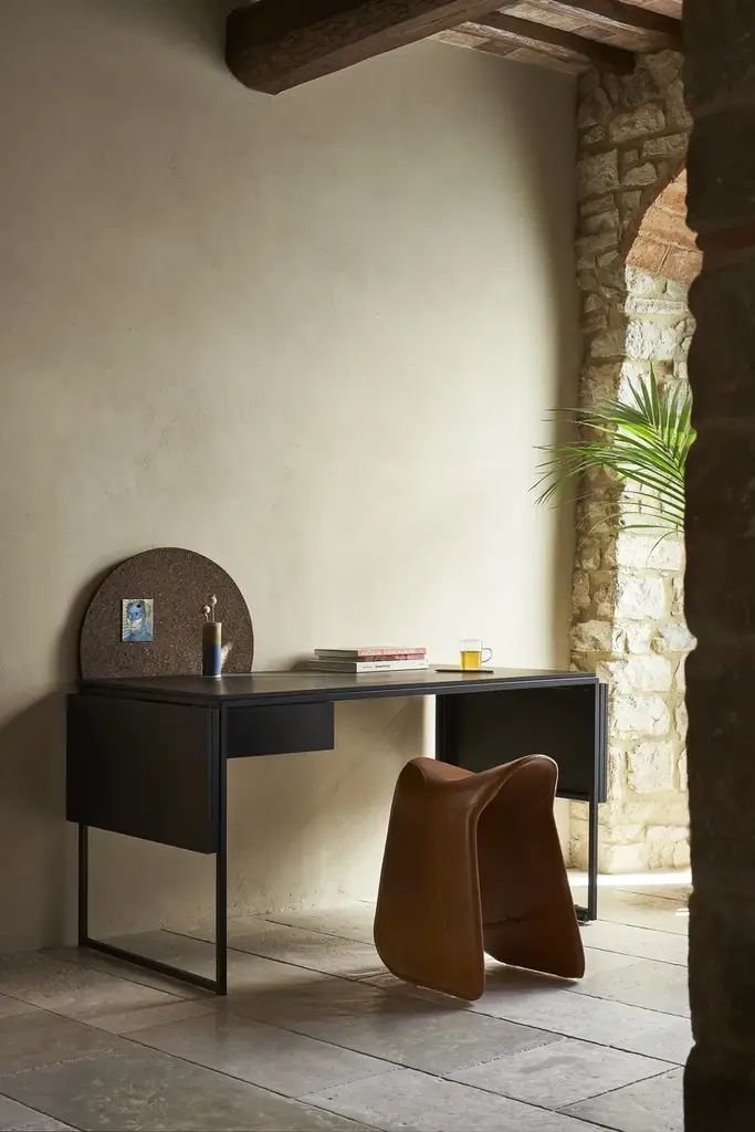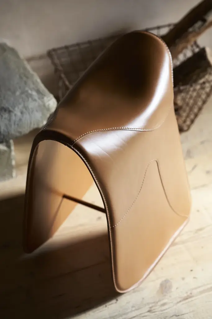 Pepe is boundless expanses and infinite horizons. Pepe is the scent carried by the wind, it is the smell of the earth. Pepe is a chair whose design is inspired by the riding saddle. Designed by Raffaella Mangiarotti, Pepe has a sinuous silhouette, a steel structure, and stylish hand-stitched natural leather upholstery. Pepe has a strong character and an unyielding temperament. Pepe has personality. Pepe is sure to spice up any environments, just as the spice it is named after does with your dishes. Pepe looks invariably great whether placed by itself, centre stage, around a table, or in front of a desk. A piece of furniture surely evocative but no less pragmatic, Pepe guarantees comfort and ergonomics thanks to the sled base accompanying the chair inclination and ensuring correct posture. Pepe combines beautiful lines and rigorous function. A defining piece in any décor, it is suitable for multiple contexts such as leisure spaces, convivial areas, lounges, workplaces, or private homes: in short, wherever you feel the need for a chair that immediately spices up your environment with intense, surprising, and lasting impressions. Pepe won the 2021 Archiproducts Design Awards in the Furniture category for being a perfect mix of manufacturing techniques, quality, aesthetics and creativity.Iconic chair reminiscent of a horse riding saddle design. Steel structure upholstered with hand-stitched full grain vegetable tanned leather. The specially designed sled base is slanted to facilitate the right posture. Finishes: natural or black leather. Note: aniline tanning is one of the finest leather processing methods, allowing each hide to retain the characteristic features that make it unique and distinguish it from others. Any imperfections therefore point to the quality and not to the defects of the product.