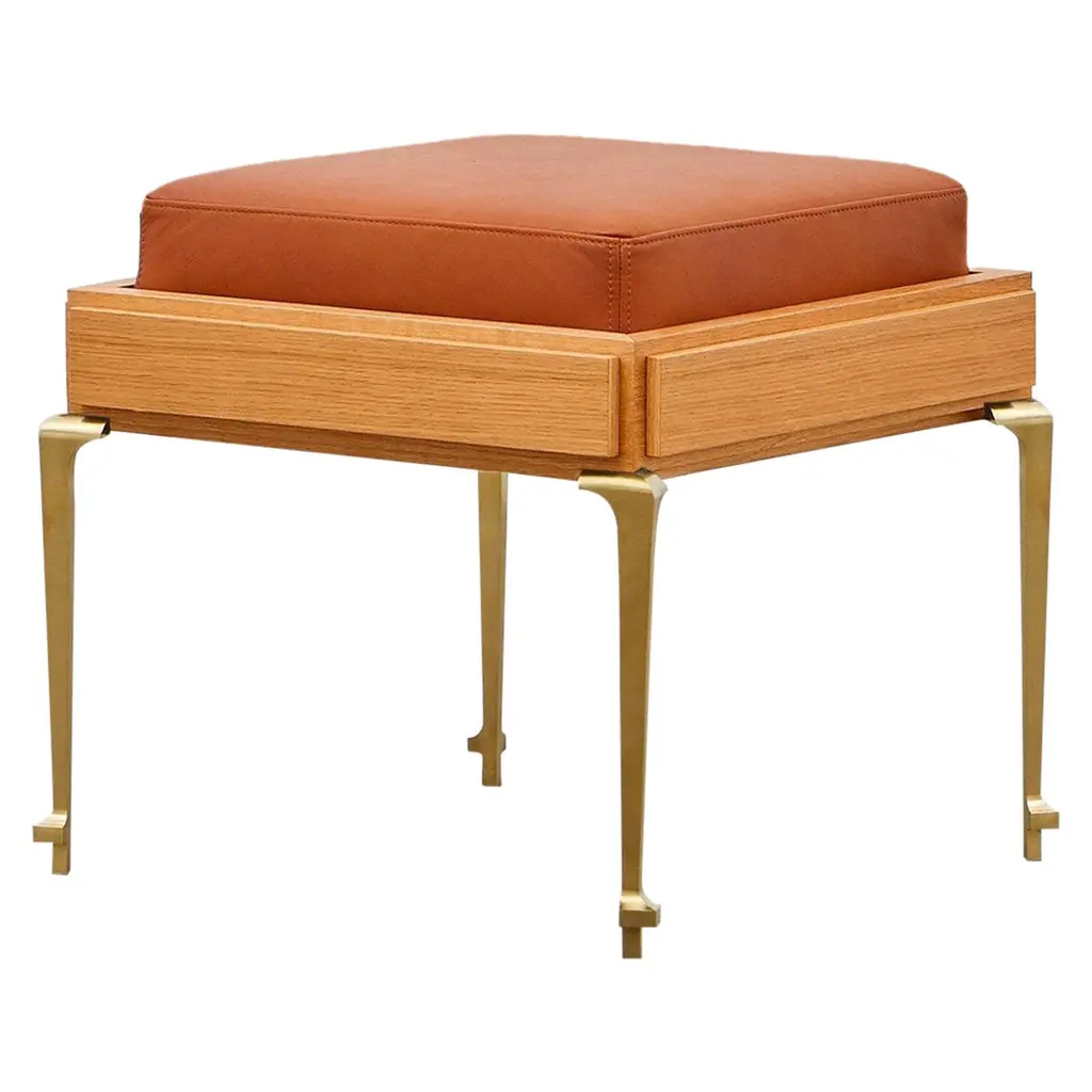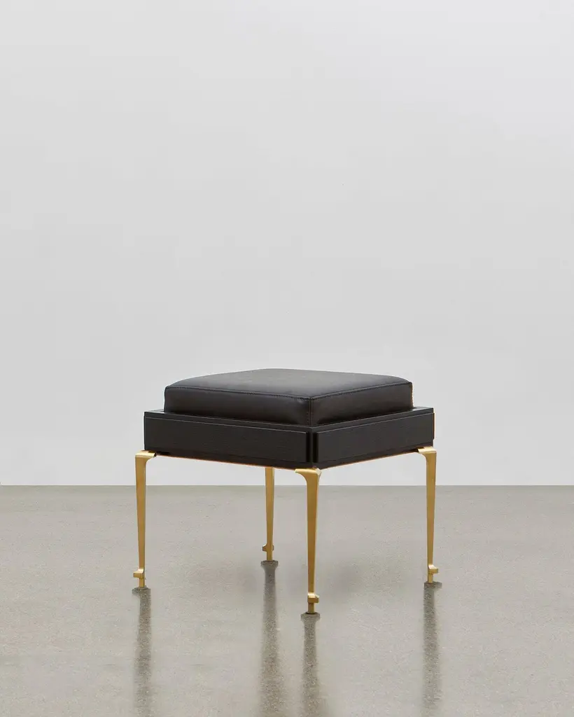Ph Stool, Brass Legs, Black Oak Veneer, Extreme Black Leather Seat