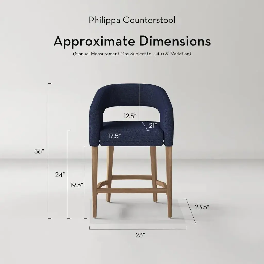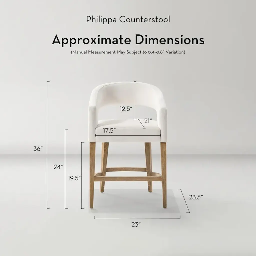 The Philippa Counterstool is a harmonious blend of timeless design and modern comfort. Upholstered in a luxe fabric and built on a kiln-dried rubberwood frame, it delivers enduring durability and elegance. With high-density foam for superior support, it’s perfect for elevating any kitchen or bar area into a refined space for gathering.ZG ExclusiveCusiom Orders: Custom furniture is manufaciured especially for you, which is why we do not accept cancellations, exchanges, or return.