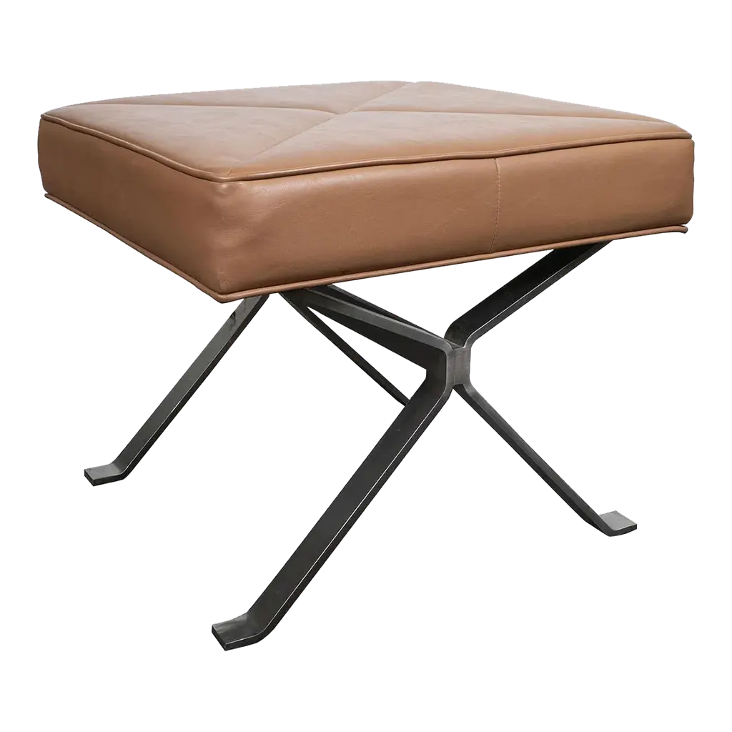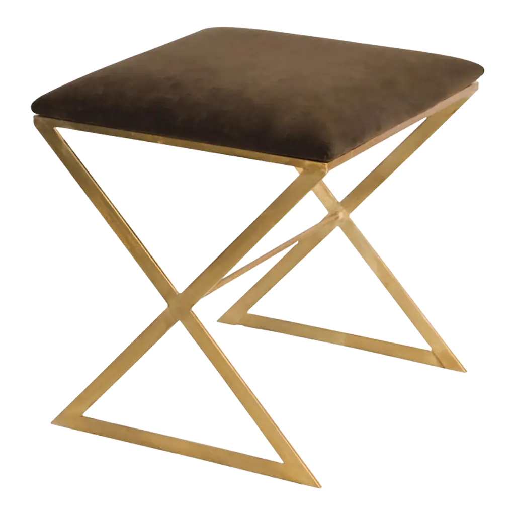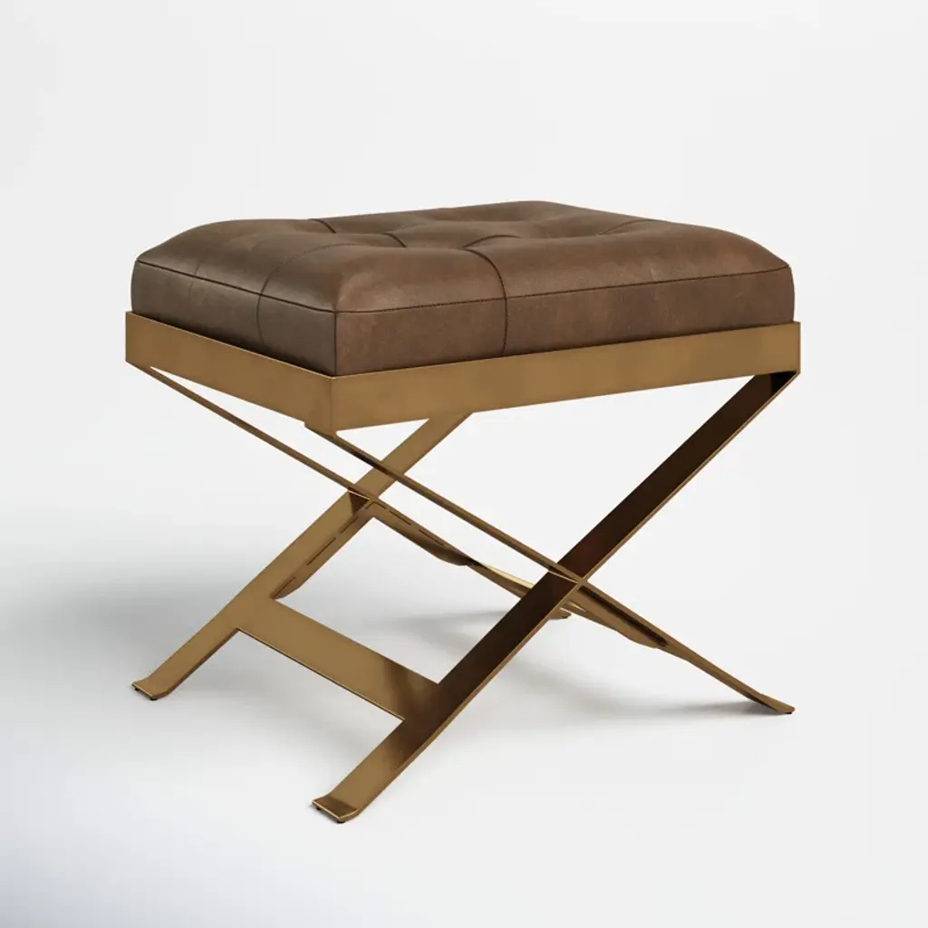 An updated version of the humble campaign stool, this Leather Vanity Stool adds extra seating and extra charm with buttery soft leather, hand-tufted in rich caramel. Brass-finished metal frame adds durability, perfect for layering with a cozy throw or adding a tray and it doubles as a cocktail ottoman.