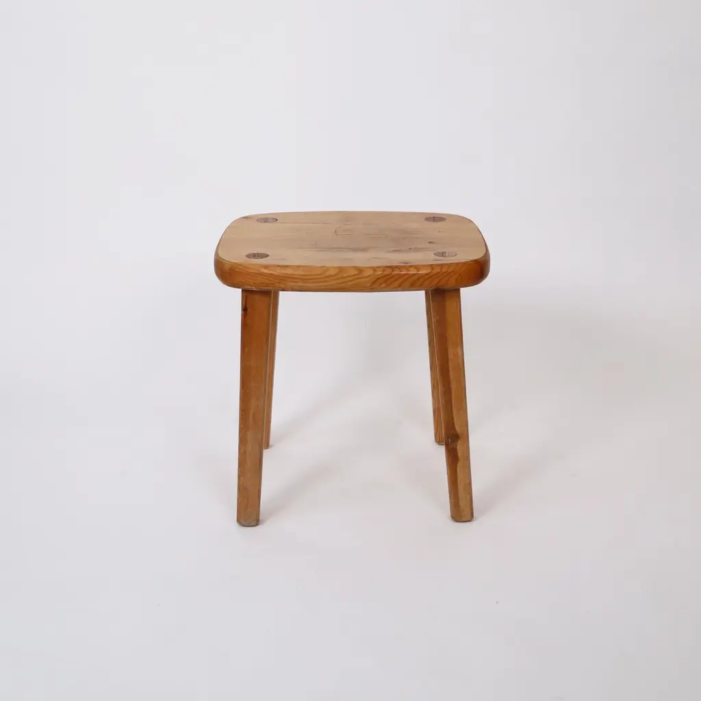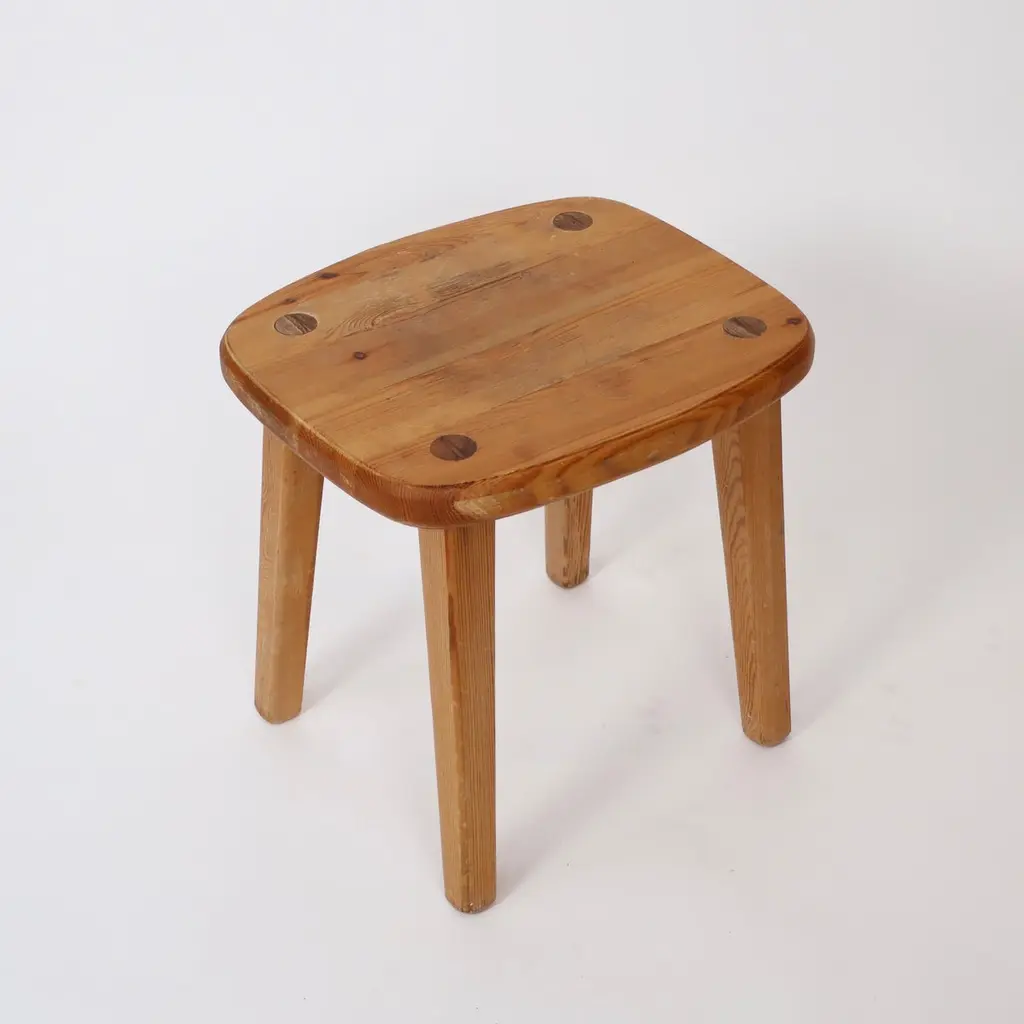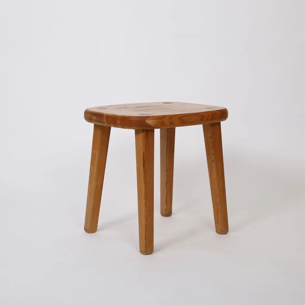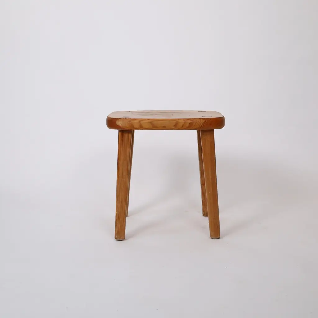 Swedish Modern Pine Stool from the 1970s. A beautiful stool or sidetable to an exquisite home. Four-leg stool in solid pine Country: Sweden Year: est. 1970s Condition: Good vintage condition. The Pine has a nice patina with a few marks, mainly on the top. One leg has been glued. Dimension (H x W x D): 44cm x 43cm x 37cm