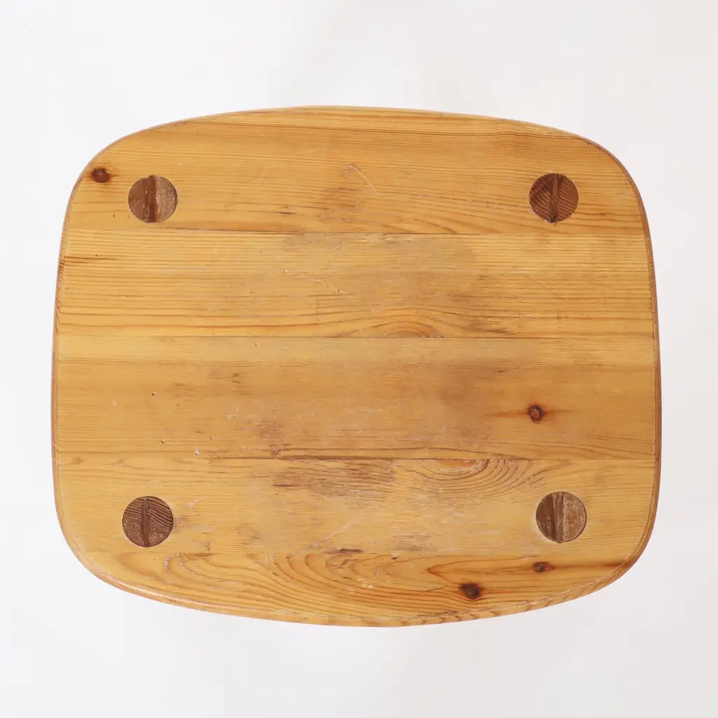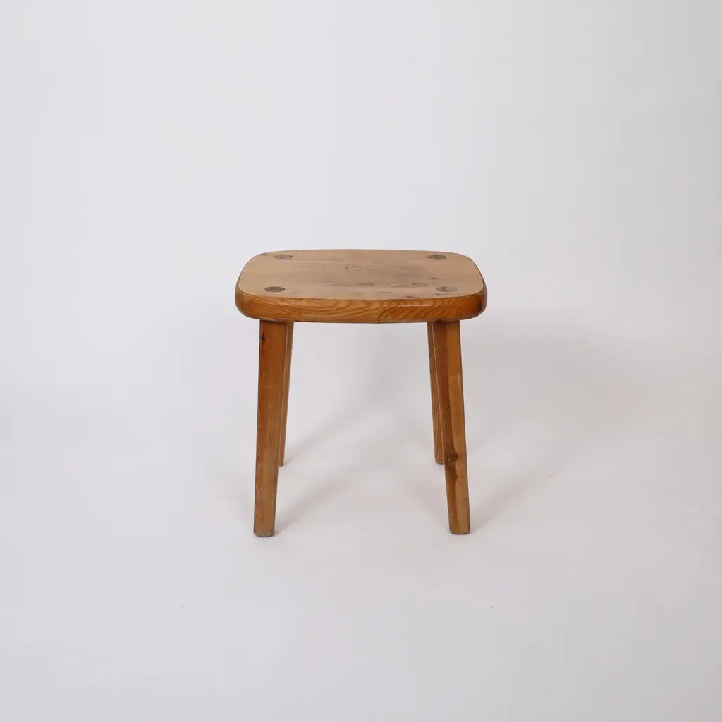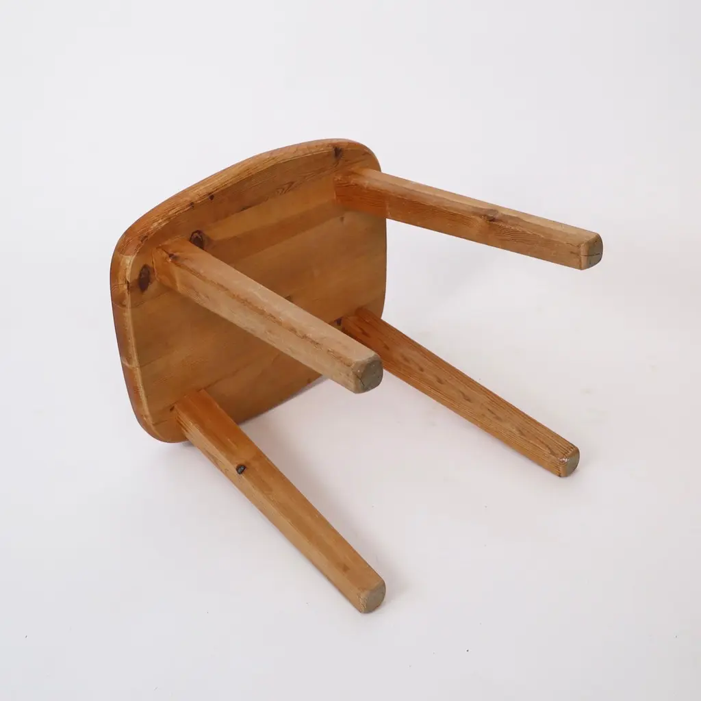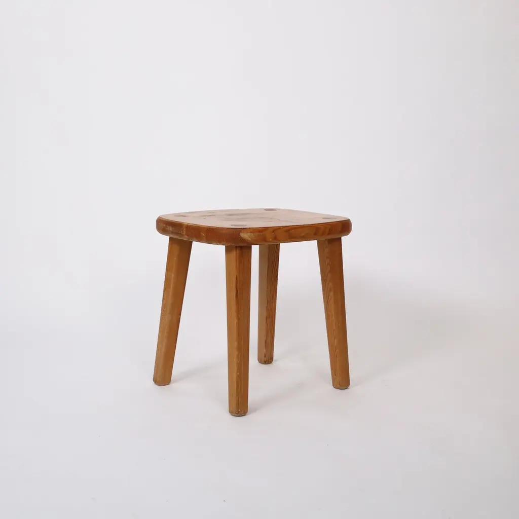 Swedish Modern Pine Stool from the 1970s. A beautiful stool or sidetable to an exquisite home. Four-leg stool in solid pine Country: Sweden Year: est. 1970s Condition: Good vintage condition. The Pine has a nice patina with a few marks, mainly on the top. One leg has been glued. Dimension (H x W x D): 44cm x 43cm x 37cm