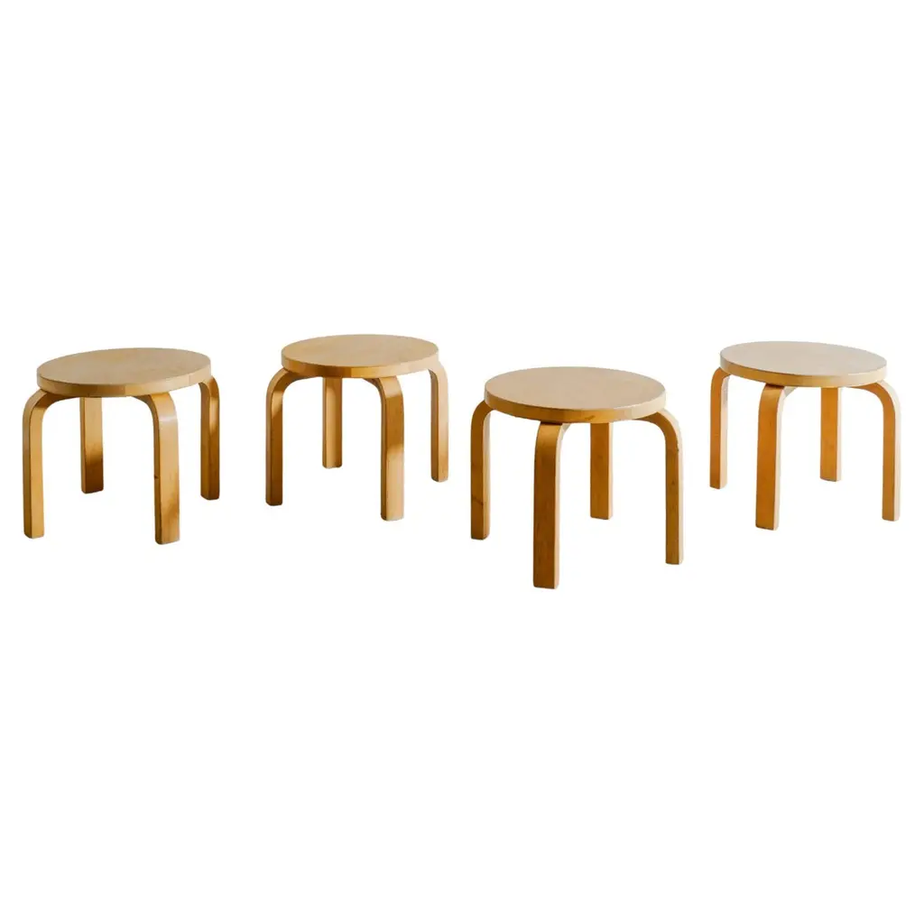 Pinewood French Stools In The Style Of Charlotte Perriand, France, 1950s