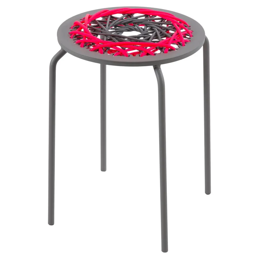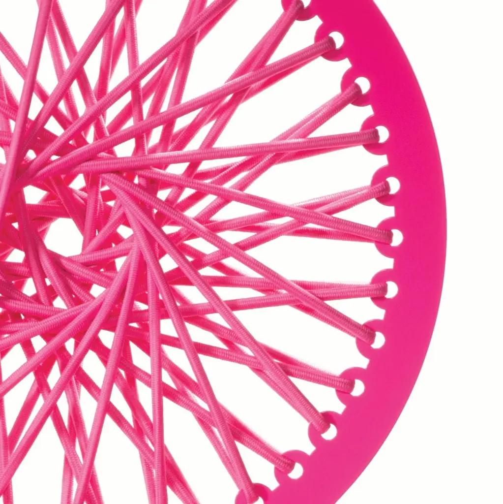 Carnevale Studio's most popular collection, “Stretch”. Through experiments with a number of different materials I chose latex, bungee and rope for their bright colors and wondrous elasticity. I wanted to bring some of the exuberance of the fashion world into my designs.Originally built and created in Brooklyn & shown at the Salone del Mobile in Milan - these new editions are made in The Netherlands, where the studio is now based.These new Dutch editions will include special editions of new colors exclusive to 1stdibs! The result is a collection of vivid pieces, after all, design should be beautiful and useful, but also fun.Handwoven by the designer, Jessica Carnevale.For indoor use only.Handmade: slight variations in color, shape and finish may be present adding to the unique beauty of each piece.Pink with Woven Bungee cord to match.