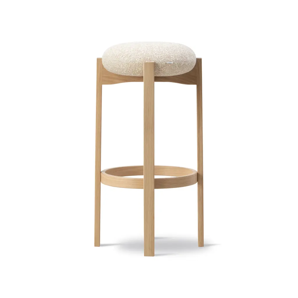 Experience Scandinavian elegance and comfort with the Pioneer Stool from Fredericia Furniture. Its sculptural design, combining soft curves and a sensual wooden frame, adds a touch of artistry to any space. The cross composition of the frame and detailed indentations display artisanal craftsmanship, while the removable cushion adds a unique, comforting touch. Highlights