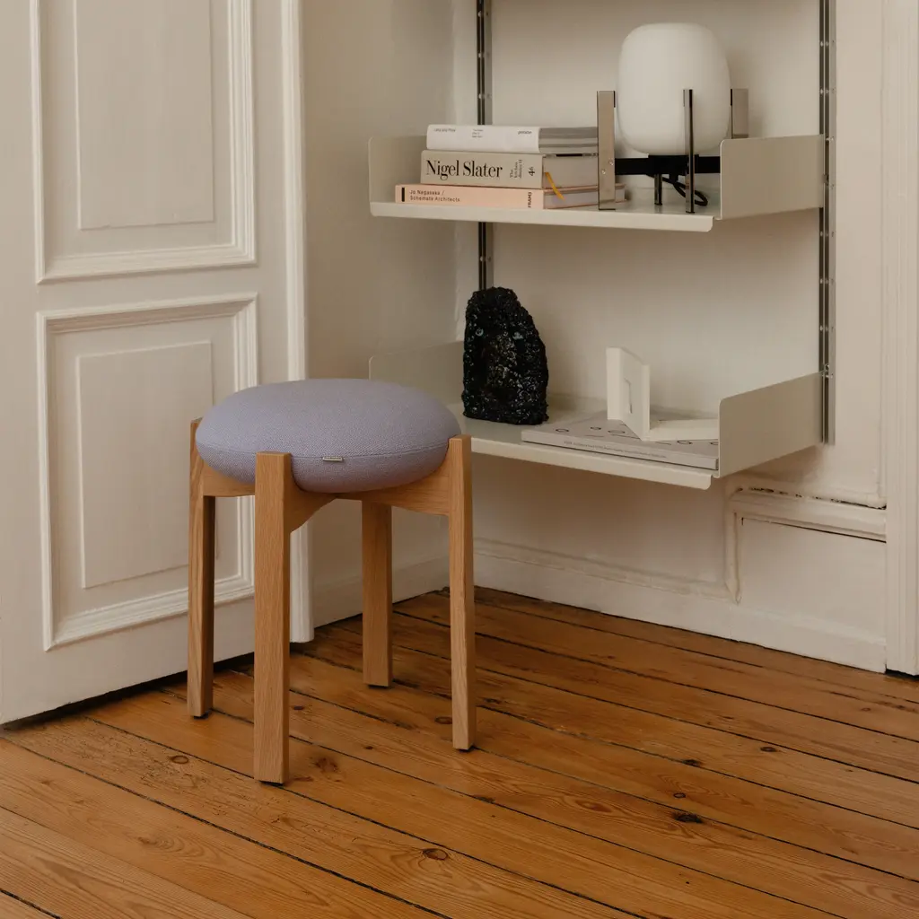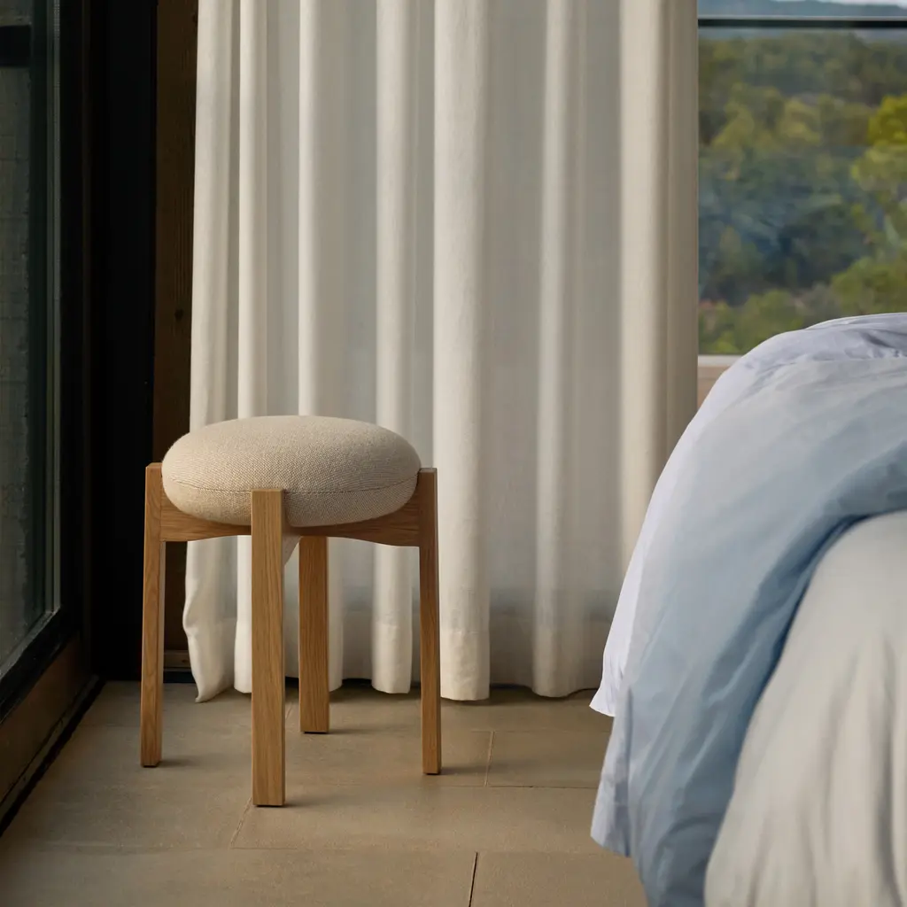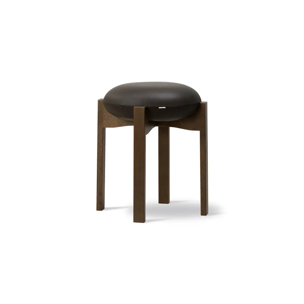 Elevate your space with the Pioneer Low Stool from Fredericia Furniture. This sculptural design expertly combines soft, round seating with a sensual wooden frame, creating a piece that is both functional and eye-catching. The unique cross composition of the legs and upholstered seat cushion exudes modern Scandinavian minimalism, perfect for any casual or upscale setting. Highlights