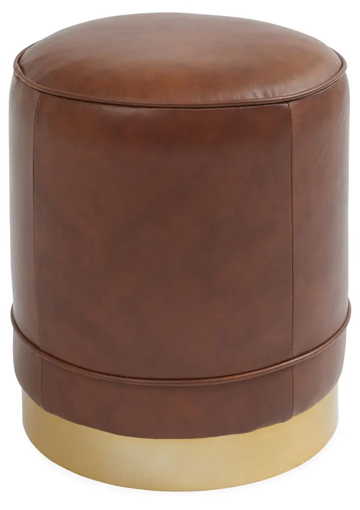 Available online exclusively at One Kings Lane: As versatile as it is eye-catching, this round stool is upholstered in citrine-hued velvet with two pronounced welts. A brassy base grounds the piece while adding shine and an element of contrast. Handcrafted in Southern California.