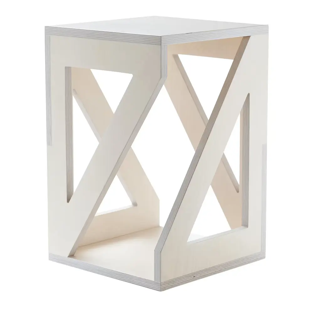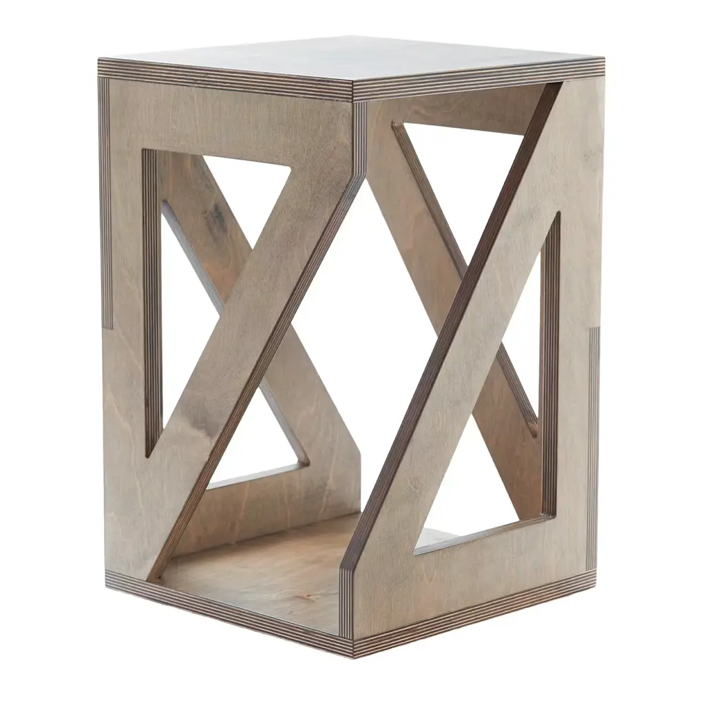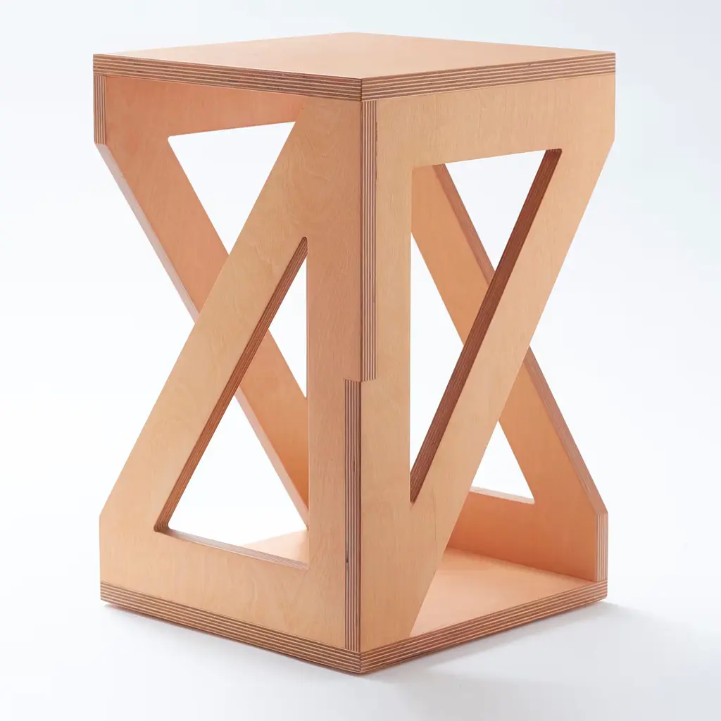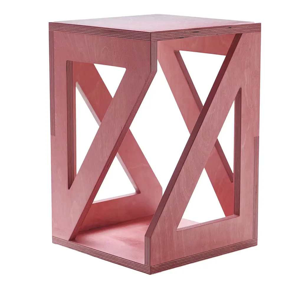 Part of a minimalist yet refined series of wooden stools designed by artist Antonio Saporito, this splendid piece will make a sculptural accent in a contemporary or rustic-chic interior. Defined by clean and essential lines of strong geometric and architectural value, it is deftly handcrafted of birch plywood, uniquely finished in a delicate copper hue.