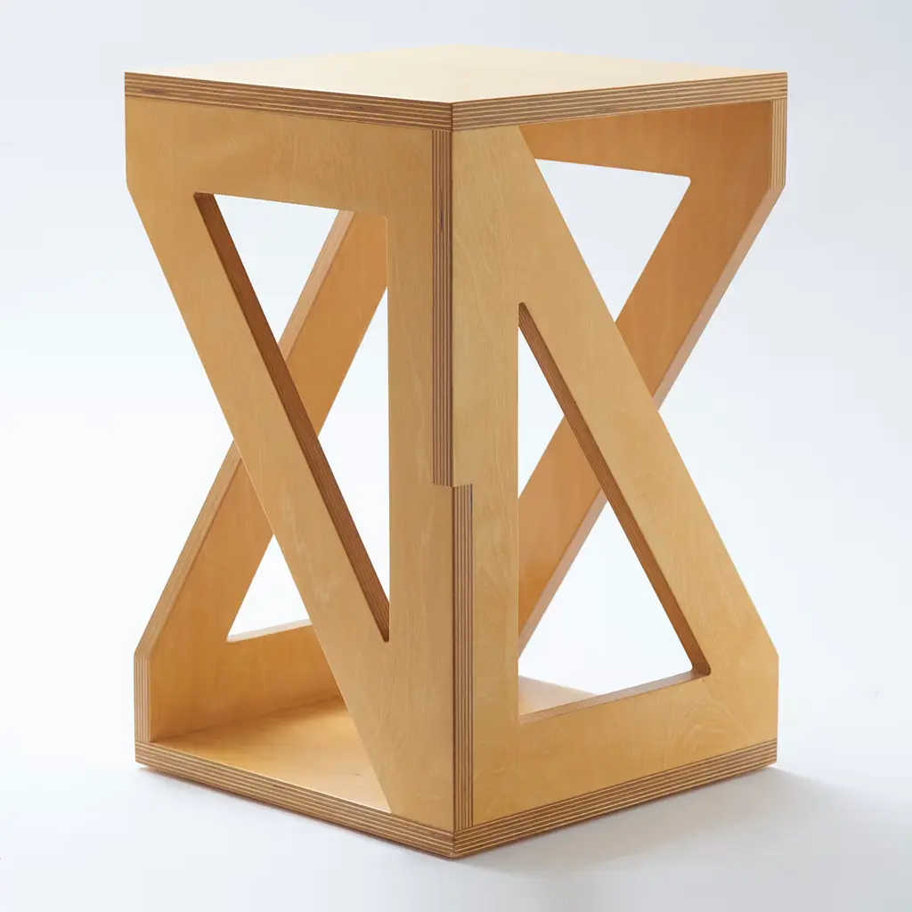 A clean and essential design by artist Antonio Saporito, this magnificent stool combines a striking interplay of geometric lines with a refined use of wood. Entirely handcrafted of birch plywood, it boasts a singular architectural profile that will make a bold statement in any contemporary or rustic-chic interior.