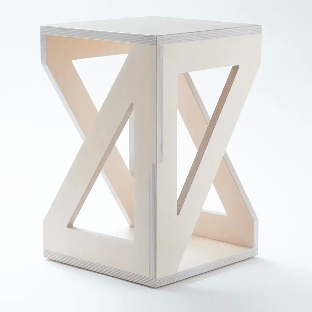 Contemporary aesthetic and traditional craftsmanship uniquely merge in this splendid stool by artist Antonio Saporito, a tribute to the natural essence of wood and to minimalist design. Deftly handcrafted of birch plywood, it boasts an exceptional structure of strong architectural value, enhanced with a delicate white color that will effortlessly suit any modern interior.