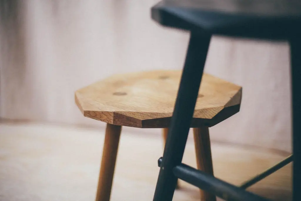 Plane Tall Stool by Temper StudioDimensions: D 30 x W 30 x H 65 cm.Materials: Wood.A family of stools in three sizes – bar, standard, and milking – these sculptural stools have myriad uses from occasional seating and bedside tables to striking plant stands. Part of our Plane Collection, they are available in a variety of native hardwoods. Featured here in XX.The Plane Collection takes inspiration from the different expressions of grain found in British hardwoods such as oak, sycamore, and ash. By cutting clean and polished facets into the wood, we’re offered a three-dimensional window into the tree, tracing the grain from a new perspectiveas it moves through each piece individually and the collection as one. By introducing an angular and precise finish to an otherwise rustic but sculptural form, we sought to capture the interplay between the organic nature of the wood and the maker’s contemporary imprint on it. The PlaneCollection gently evolves and encompasses dining tables, stools, and benches of different sizes and finishes.We are George Winks and Katharine Prendergast, the minds and the hands behind Temper. From our studio, lab, and workshop in rural Wiltshire, we design and make idiosyncratic furniture that speaks to our fascination with experimentation, form and materiality. Drawn to the generative space between thinking and making and learning by doing, George’s detailed aesthetic softens the binary between art and artisanship and forms the foundation of Temper’s explorative, process-led approach.We encourage an open-ended, creative process that explores a continuous line of questioning between the material and the maker. Constantly learning from and led by the materials we work with, we move fluidly between problem solving, curating, and making. Through knowledge and play, these learnings are woven and re-woven into every piece we make, forming a unique expression and story of how each and every object comes to be.Nestled in the Wiltshire countryside, our three spaces express the nature of what we do and our values. The studio sits at the heart of Temper and is where our ideas take their original form.The lab encourages us to play, experiment, and evolve those ideas, while the workshop – a characterful forest green Nissen hut – is where we hone our skills and transform our learnings into physical objects.Our work encompasses made-to-order, commissions, and explorative work. We work directly with private clients and on larger projects with interior designers, architects, and contractors, where we enjoy being part of the wider ecosystem of how spaces come together. Everything we make is part of a continuously moving and evolving body of research that feeds into the breadth of our practice.