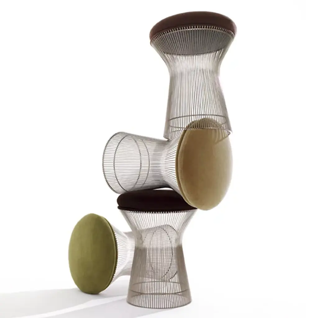 Transforming steel wire into a visionary furniture series, Warren Platner made design history with this 1966 seating creation. The Platner Stool by Knoll boasts a radially symmetrical wire structure that creates a stunning moiré effect and coordinates seamlessly with the matching series of tables and chairs. It's topped by a cushion available in a variety of Knoll textiles, making it easy to customize for your décor.
