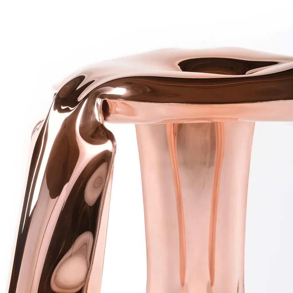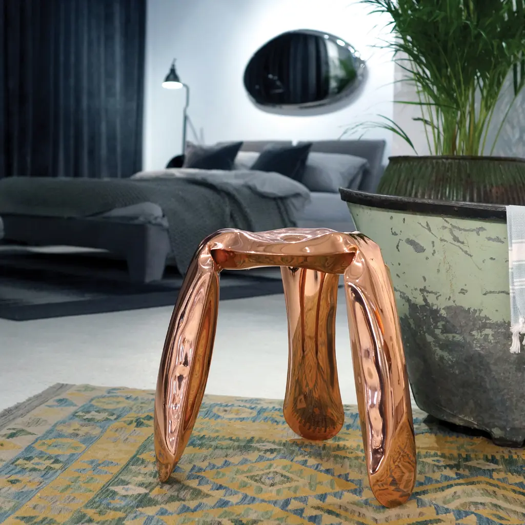 The Plopp Stools are made through a complex and innovative technology called ‘free inner pressure deformation’ – a manufacturing process developed by Polish designer and engineer Oskar Zieta, whereby flat, welded steel sheets are industrially inflated. This new process allows for the creation of complex, lightweight and weight-bearing forms while using only a minimal amount of material. Using this technology a new piece of steel furniture is created which in its form refers to plastic furniture but with the solidity and wearing qualities of steel. In an era of increasing global warming it makes sense to create products that do not break the day after the expiration of the guarantee certificate. Let’s go back making things that last.