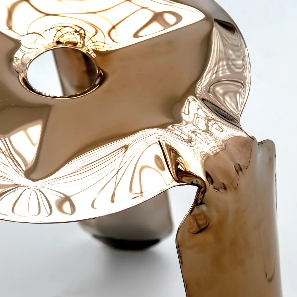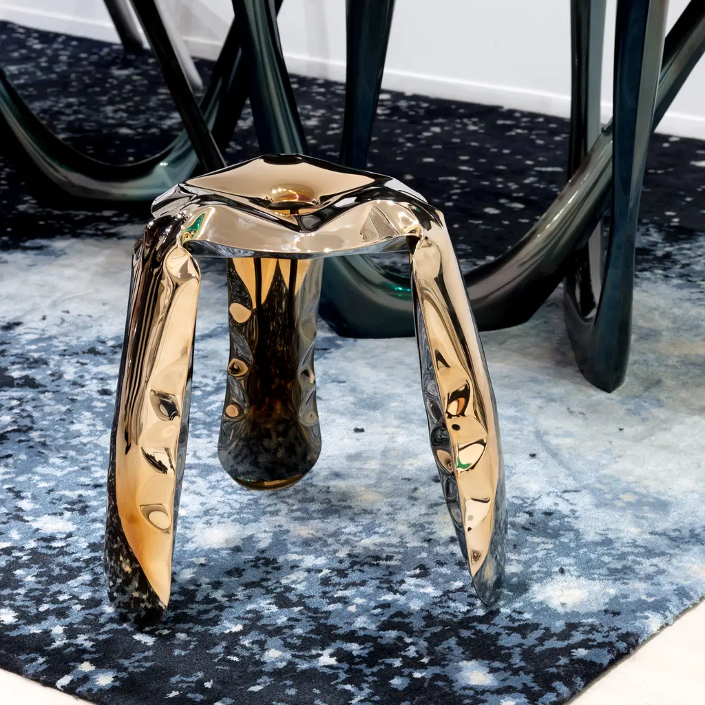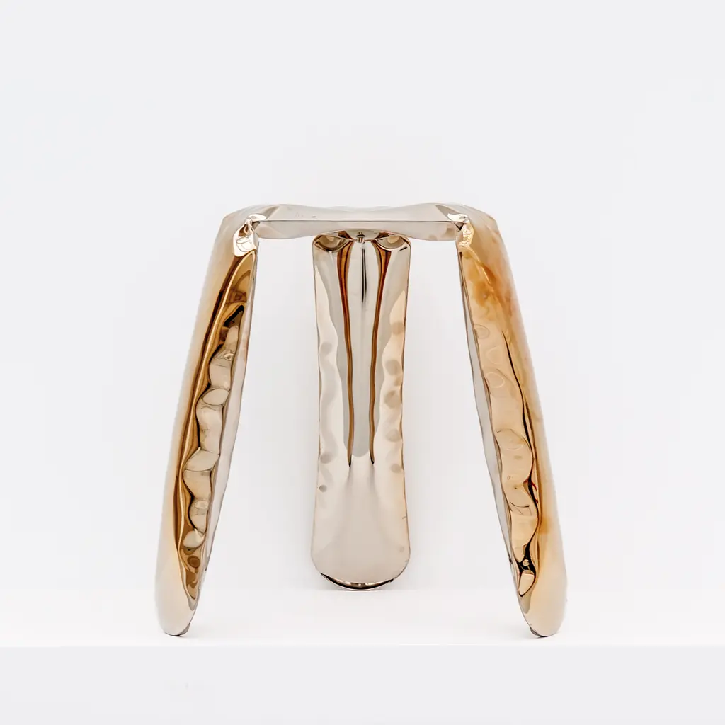 The Plopp Stools are made through a complex and innovative technology called ‘free inner pressure deformation’ – a manufacturing process developed by Polish designer and engineer Oskar Zieta, whereby flat, welded steel sheets are industrially inflated. This new process allows for the creation of complex, lightweight and weight-bearing forms while using only a minimal amount of material. Using this technology a new piece of steel furniture is created which in its form refers to plastic furniture but with the solidity and wearing qualities of steel. In an era of increasing global warming it makes sense to create products that do not break the day after the expiration of the guarantee certificate. Let’s go back making things that last.