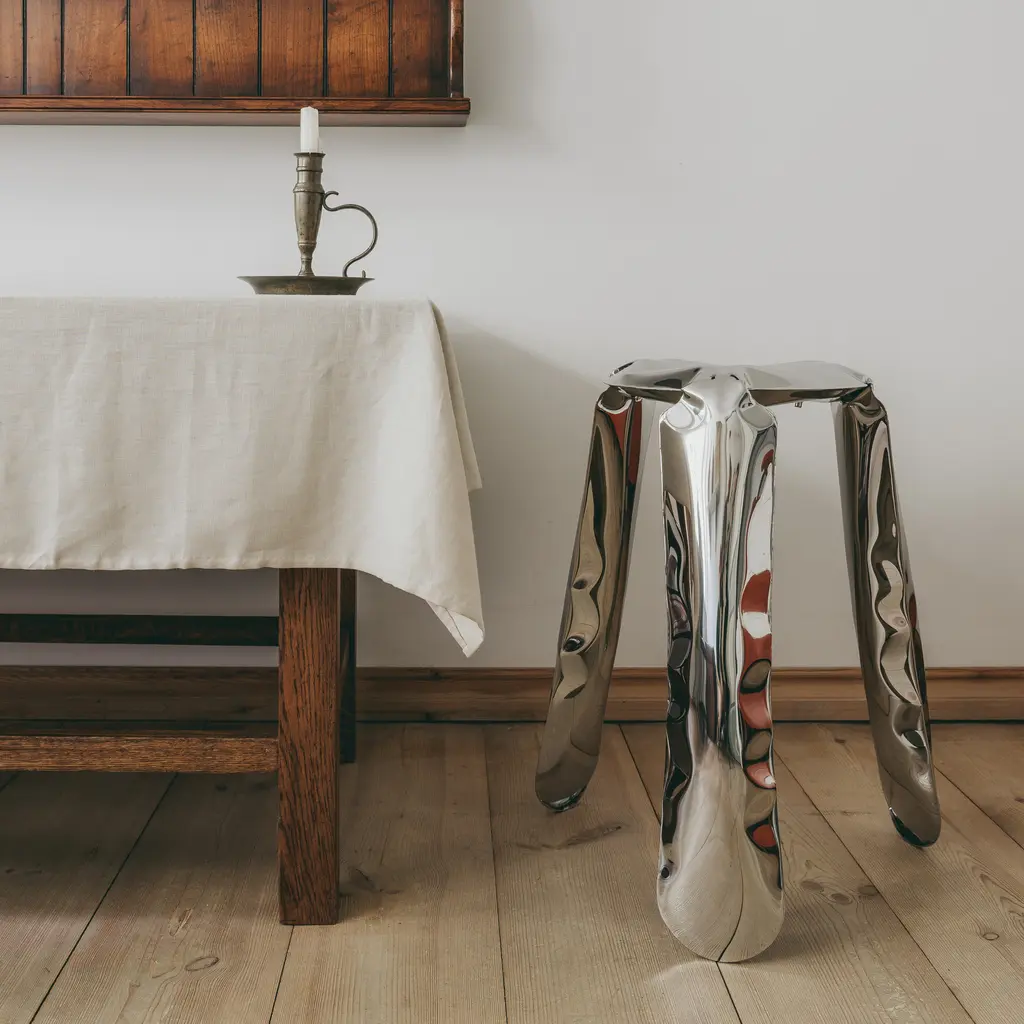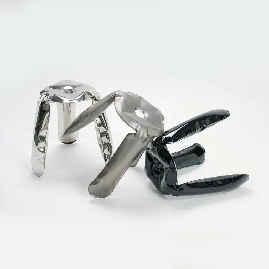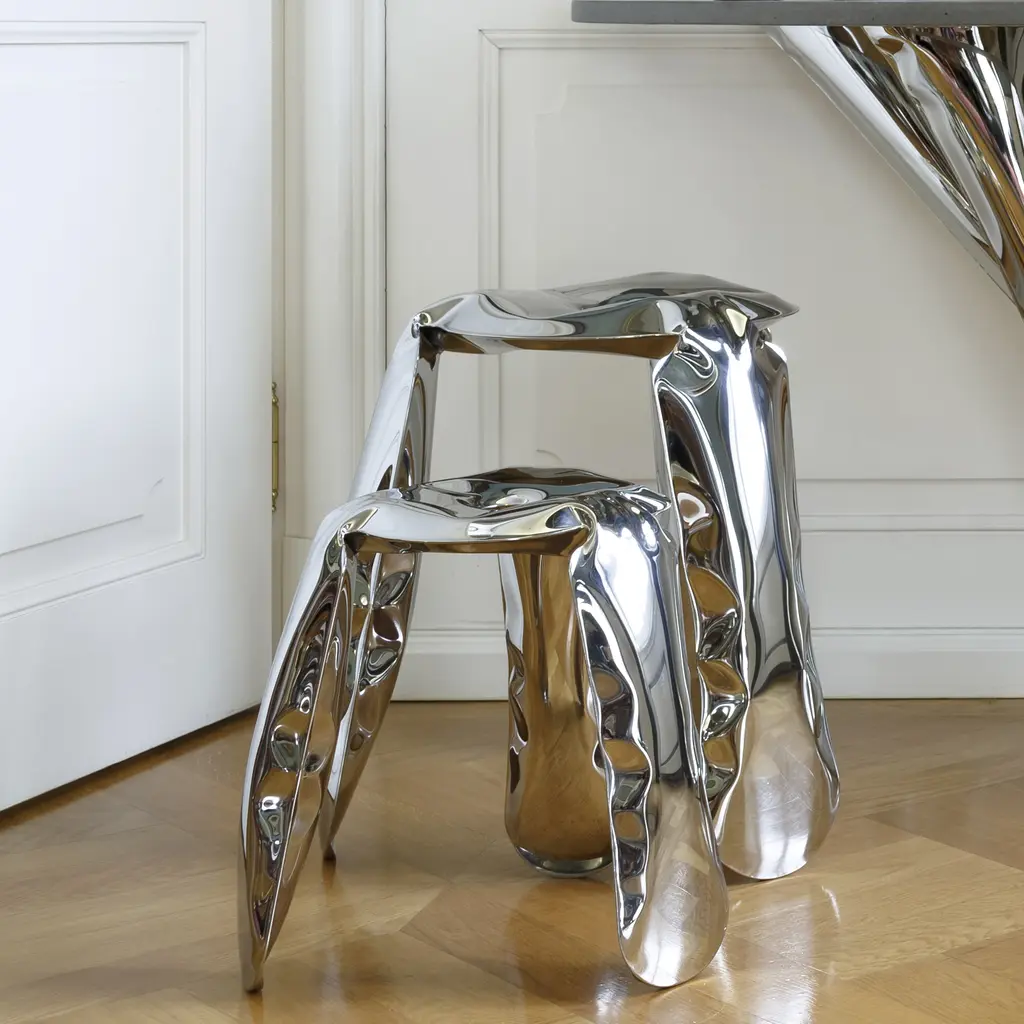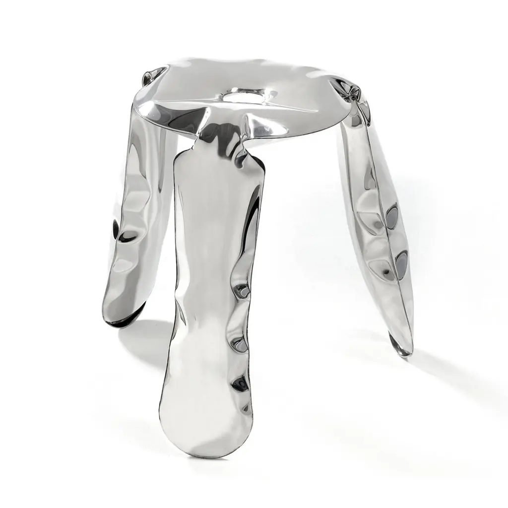 Plopp Inflated Metal Stool, Polished Steel