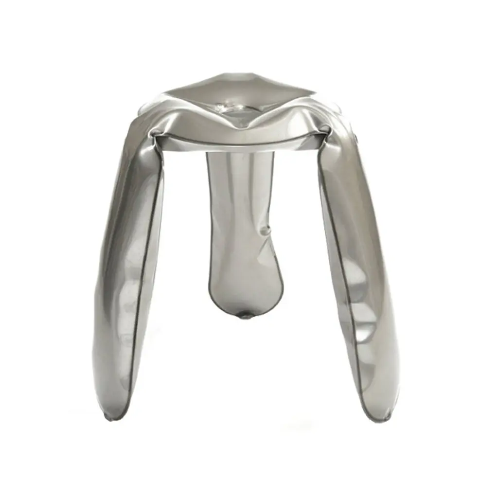 The Plopp Stools are made through a complex and innovative technology called ‘free inner pressure deformation’ – a manufacturing process developed by Polish designer and engineer Oskar Zieta, whereby flat, welded steel sheets are industrially inflated. This new process allows for the creation of complex, lightweight and weight-bearing forms while using only a minimal amount of material. Using this technology a new piece of steel furniture is created which in its form refers to plastic furniture but with the solidity and wearing qualities of steel. In an era of increasing global warming it makes sense to create products that do not break the day after the expiration of the guarantee certificate. Let’s go back making things that last.