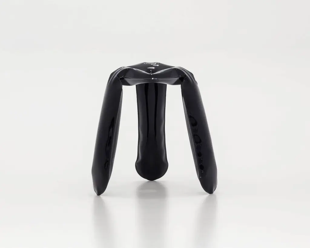 "Plopp" stool by Zieta, black versionModel standardMeasure: 50 cm high, 35 cm diameterHalfway between design and engineering Zieta Prozessdesign does not only wants to focus on the beauty of the shapes of objects and furniture they design, but also focuses on creating innovative solutions that can be applied to the production of their collections and leave them endless possibilities. Zieta is best known for his collection of stools “Plopp” made through the technologist FIDU. These stools appear to be almost soft and seem to be made of foldable or even wrinkled material. In fact, these Plopp stools are metal. Two laser-cut metal sheets are first welded together before air is injected between them until they separate from each other forming a three-dimensional object.