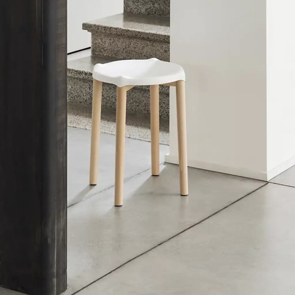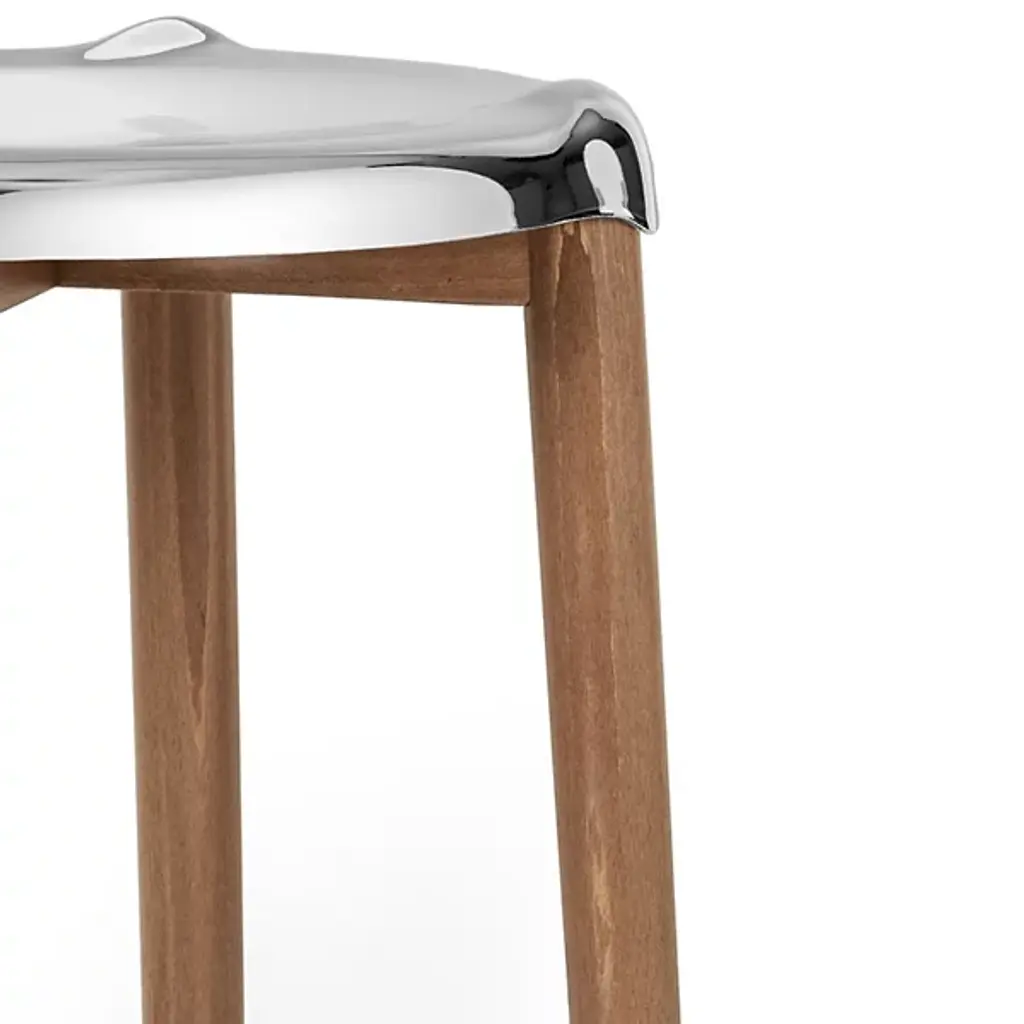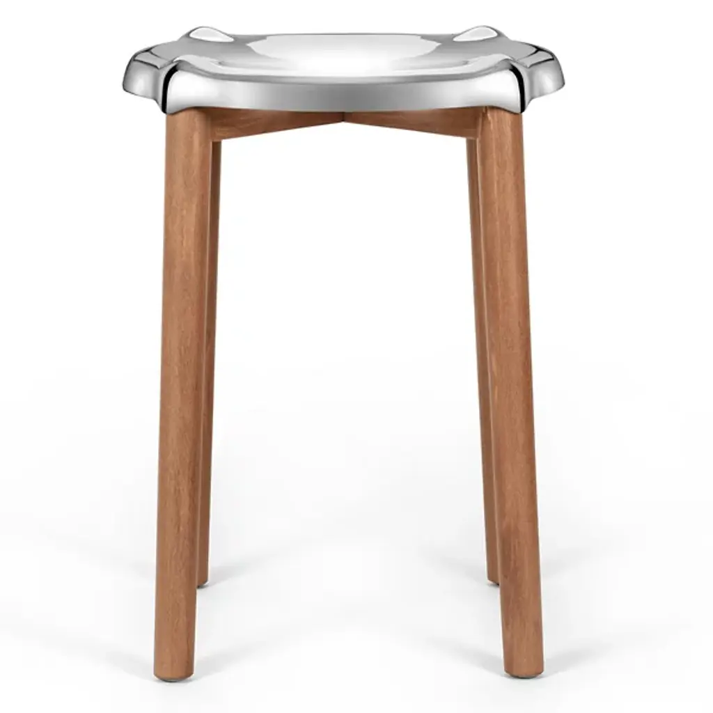 The Poêle Low Stool from Alessi offers a unique design with two contrasting elements: a sleek, lightweight wooden structure paired with a soft, organic steel seat. The dark finish on the wood, showcasing the natural grain, enhances the stool's sophisticated look and complements the steel shell. Versatile and functional, it serves as the perfect seating solution for last-minute guests or as a refined addition to the bathroom, blending elegance with practicality in any space.