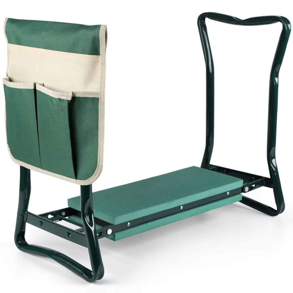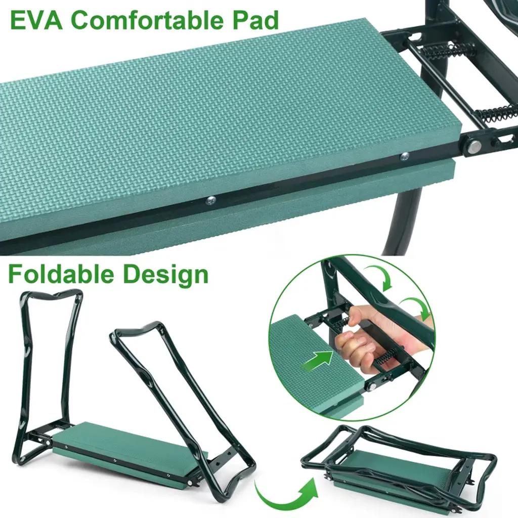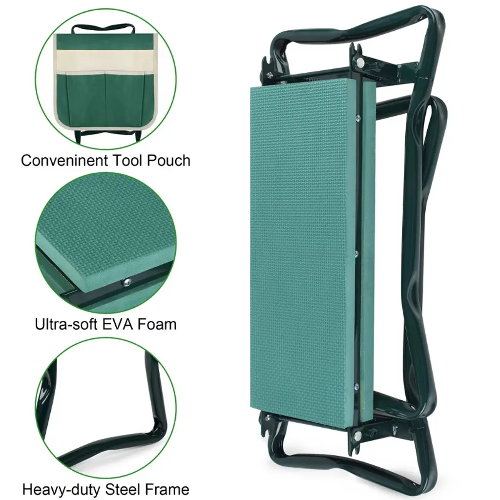 Portable Foldable Gardening Kneeling Bench Stool With Tool Pouch And Eva Foam Kneeling Pad