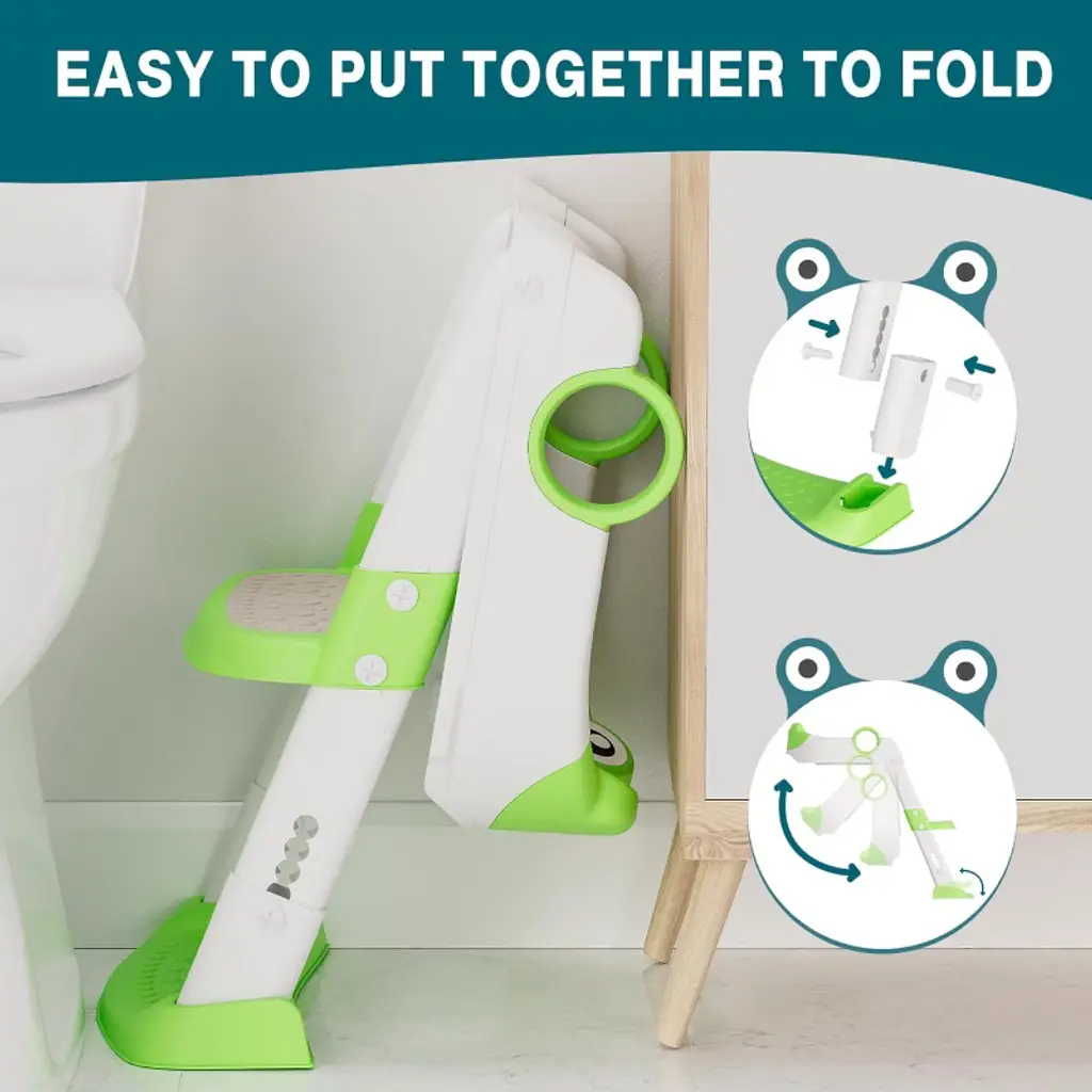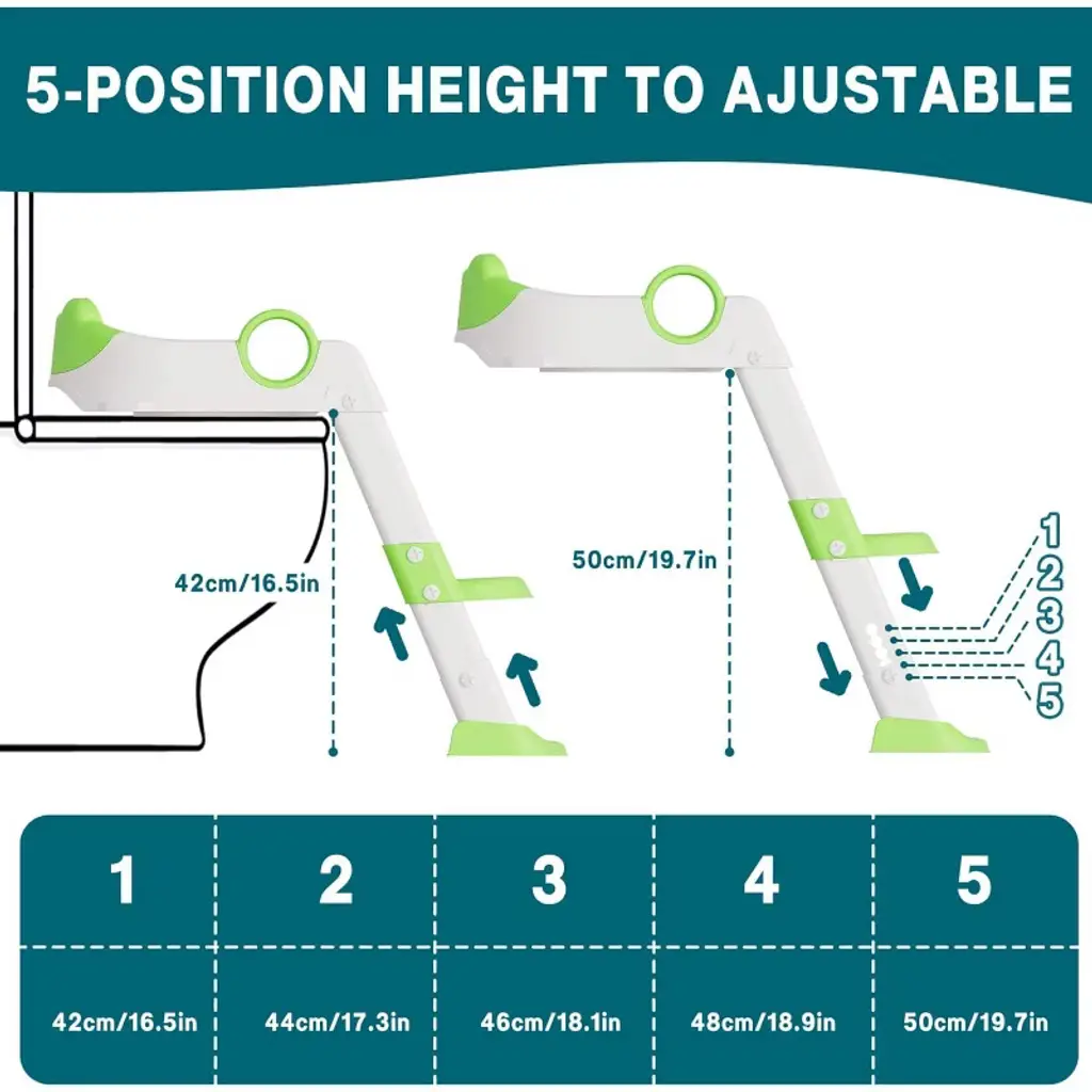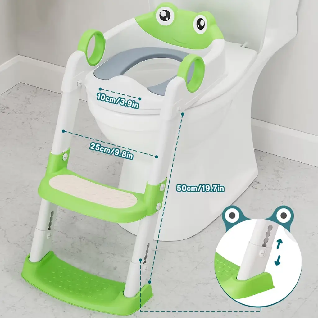 Adjustable Height Legs: Designed with adjustable legs to accommodate toddlers of different heights, ensuring comfort and ease during toilet training. Anti-Slip Safety Pads: Equipped with anti-slip pads on the base and step to provide stability and prevent accidents, making it safe for young children to use independently. Wide Step Design: Features a wide, sturdy step that offers a secure footing for kids, enhancing their confidence and balance while climbing and sitting. Toddler Seat Comfort: Comes with a specially designed toddler seat that fits securely on standard toilets, providing a comfortable and secure seating experience for boys and girls. Durable and Easy to Clean: Made from high-quality materials that are durable and easy to clean, ensuring long-lasting use and hygiene throughout the potty training phase.