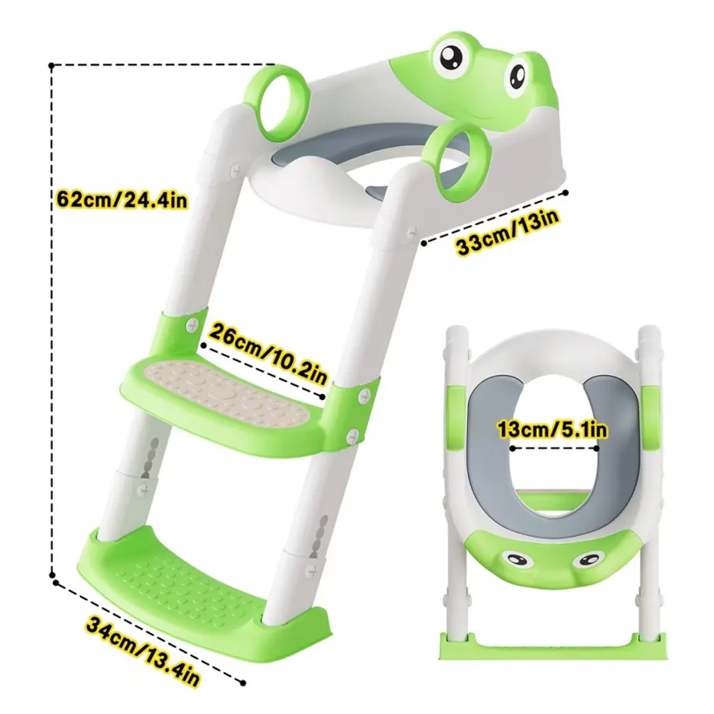 Potty Training Seat With Step Stool Ladder, Adjustable Height With Anti-slip Pads For Toddlers, Green