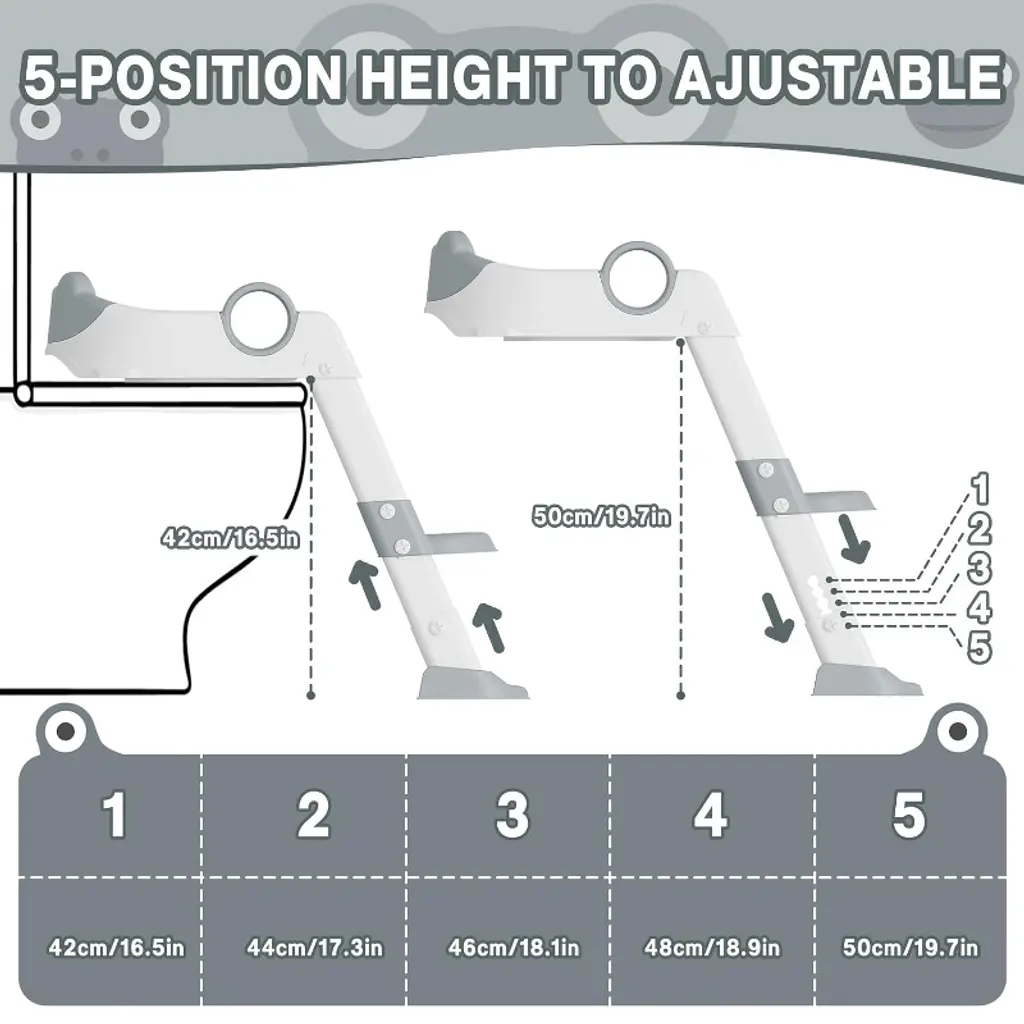 Foldable Design: The potty training seat with step stool ladder features a convenient foldable design, making it easy to store and transport, perfect for busy parents and on-the-go use. Adjustable Height: Equipped with adjustable height legs, this training seat grows with your child, ensuring a comfortable and secure fit at every stage of potty training. Sturdy and Safe Construction: Made with durable materials and anti-slip safe pads, this potty training seat provides a stable and secure platform to prevent accidents and build confidence. Encourages Kids Independence: Designed to promote self-reliance, the quick ladder helps toddlers climb up and down safely, fostering independence during potty training. Multi-Functional Training Tool: Combining a potty training seat with a step stool ladder, this product offers a practical and efficient solution to make potty training easier and more enjoyable for both kids and parents.