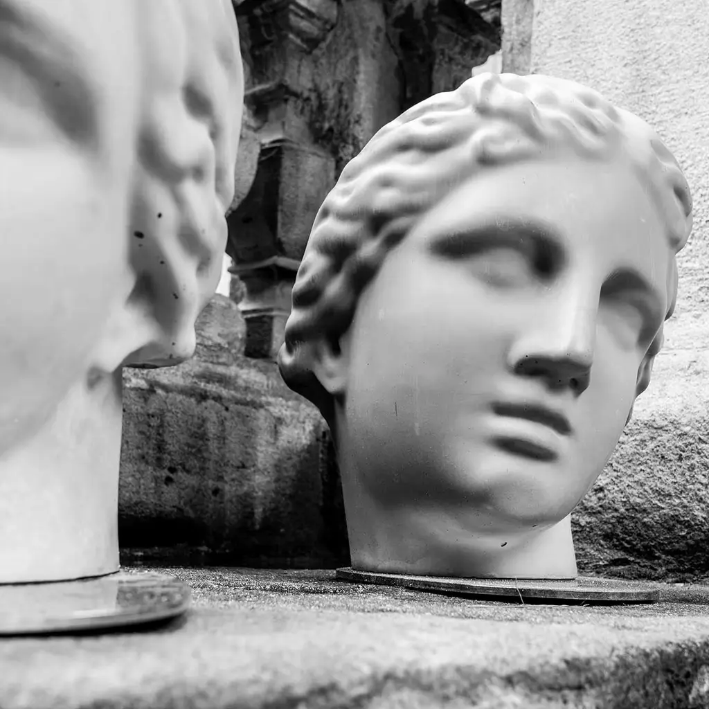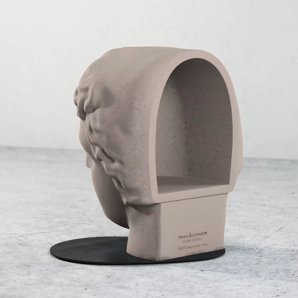 This anthropomorphic, classically styled female head creates an aura of mystery and grace. Its gentle, powdered surface takes the edge off its cold, industrial, concrete structure. August Perret, the French architect who popularized the use of this substance, once famously stated, Concrete is a stone that is born, and natural stone is a stone that died.
