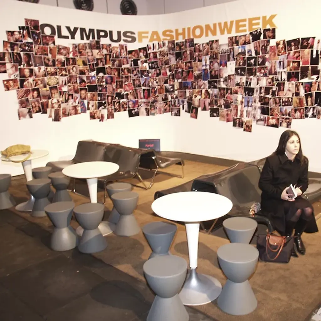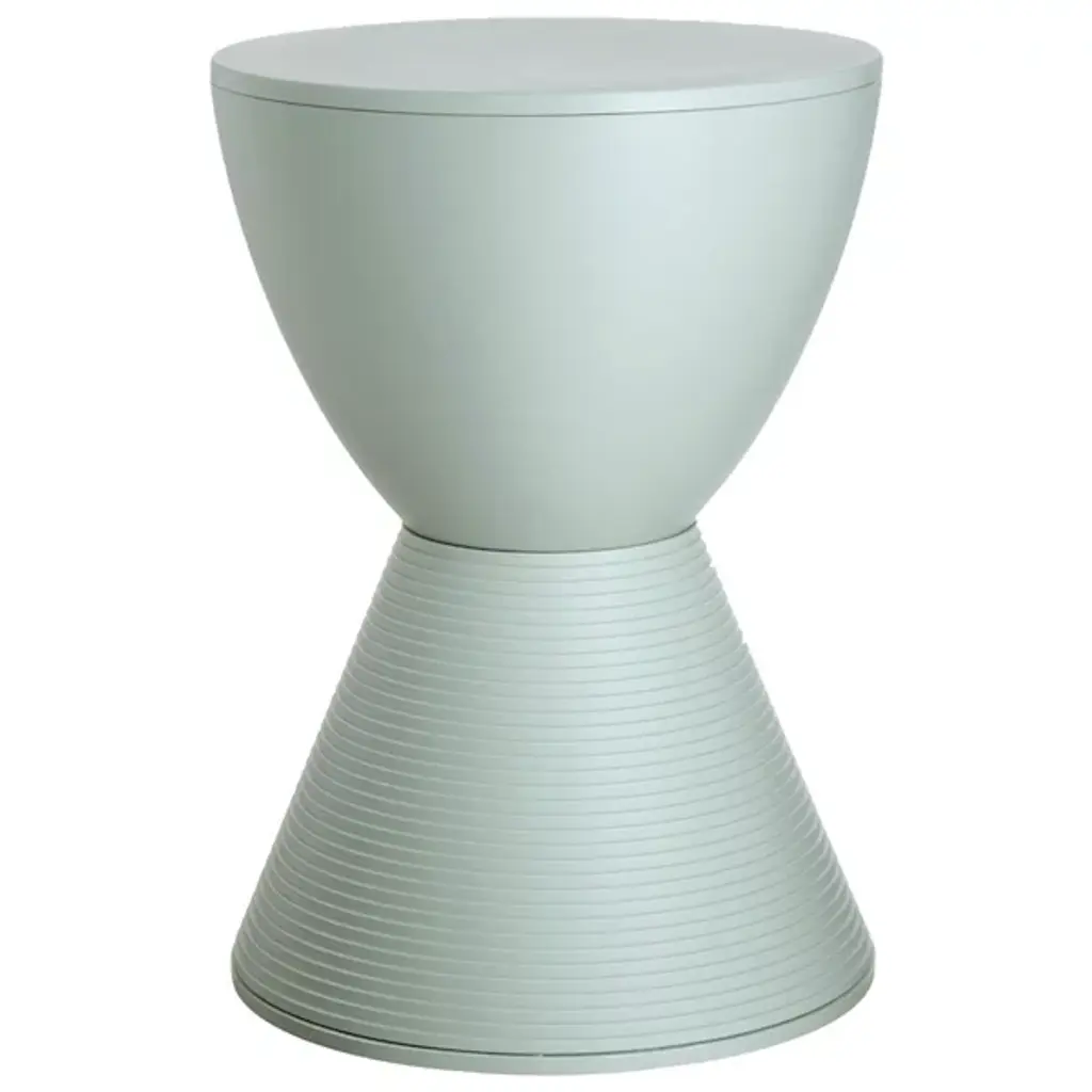 The Kartell Prince AHA Stool by Kartell was designed by Philippe Starck with a hourglass shape composed of two cones--one slightly rounded and smooth, the other straight and ribbed. The stool is made entirely from polypropylene, which is durable and weather resistant. The stools can be stacked to 6 high, a pragmatic and artful way to store them when not in use.