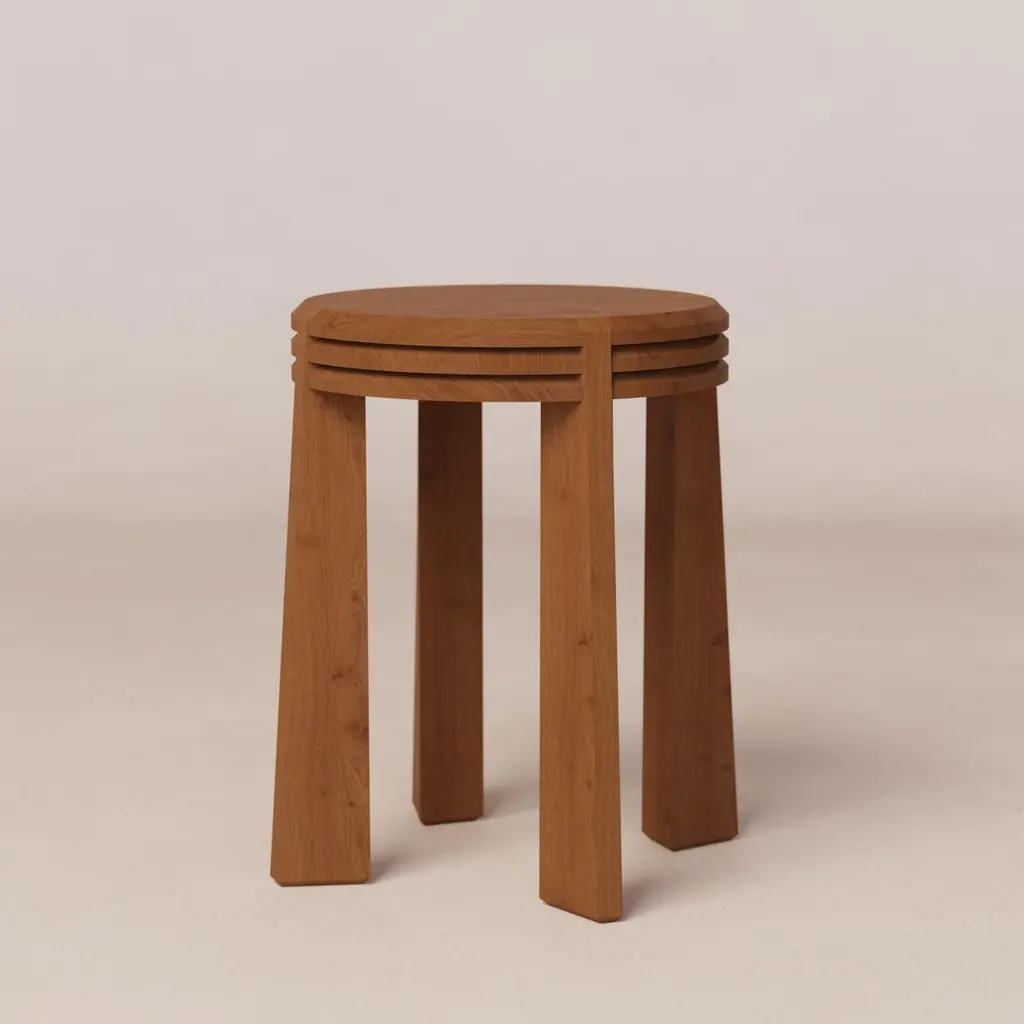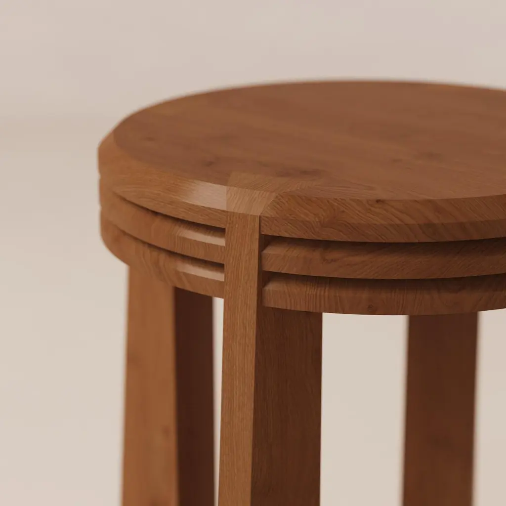 Prisma Oak Stool With Three Layered Seating By Luis Gimeno