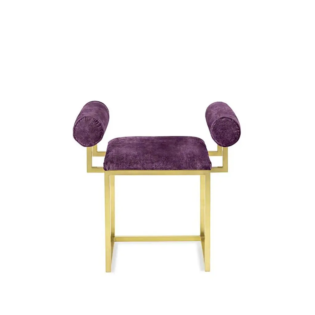Prugna Awaiting H Stool by Secondome EdizioniDesigner: Coralla Maiuri + Giorgia Zanellato.Dimensions: D 40 x W 65 x H 60 cm.Materials: Brass and velvet.Collection / Production: Secondome. This piece can be customized. Available colors: any kind of monocromatic velvet color. Please contact us. This stool can be considered a “spin-off” of the Awaiting collection, presented by Secondome during Milan Fuorisalone, 2016. A classic yet contemporary brass structure designed by Giorgia Zanellato, upholstered with Dedar velvet (on request). Every piece is handmade by Italian artisans and highly customizable (i.e. velvet color, metal, piece length, position and dimension of the arm). This piece is an open edition.THE GALLERYSecondome is a Design Gallery focused on contemporary designers and innovative projects worldwide.Founded by Claudia Pignatale in 2006, Secondome produces its own collection of Furniture and objects working to launch experimental designers, artisans and master craftsmen. Its mission lies in highlighting both the high quality manufacture of the Made in Italy brand and the originality of products, emphasizing the tradition of Italian craftsmanship whilst breaking the mold of lifeless objets d’art.The artisanal nature of Secondome’s production makes each piece individual and highly personalized.