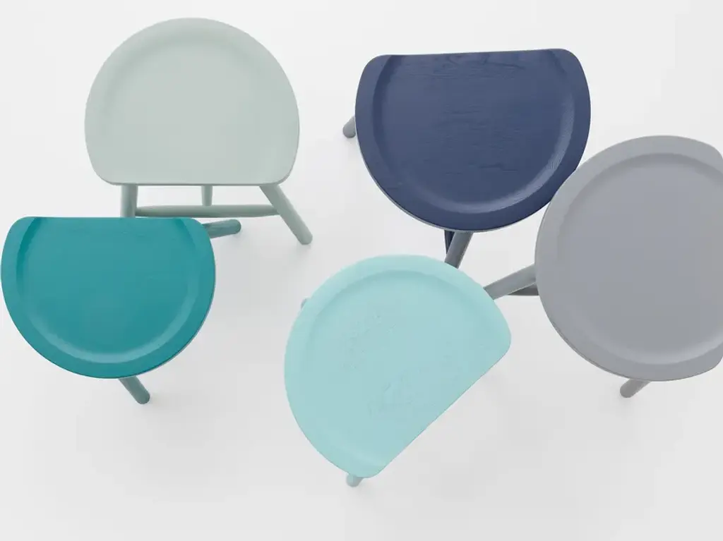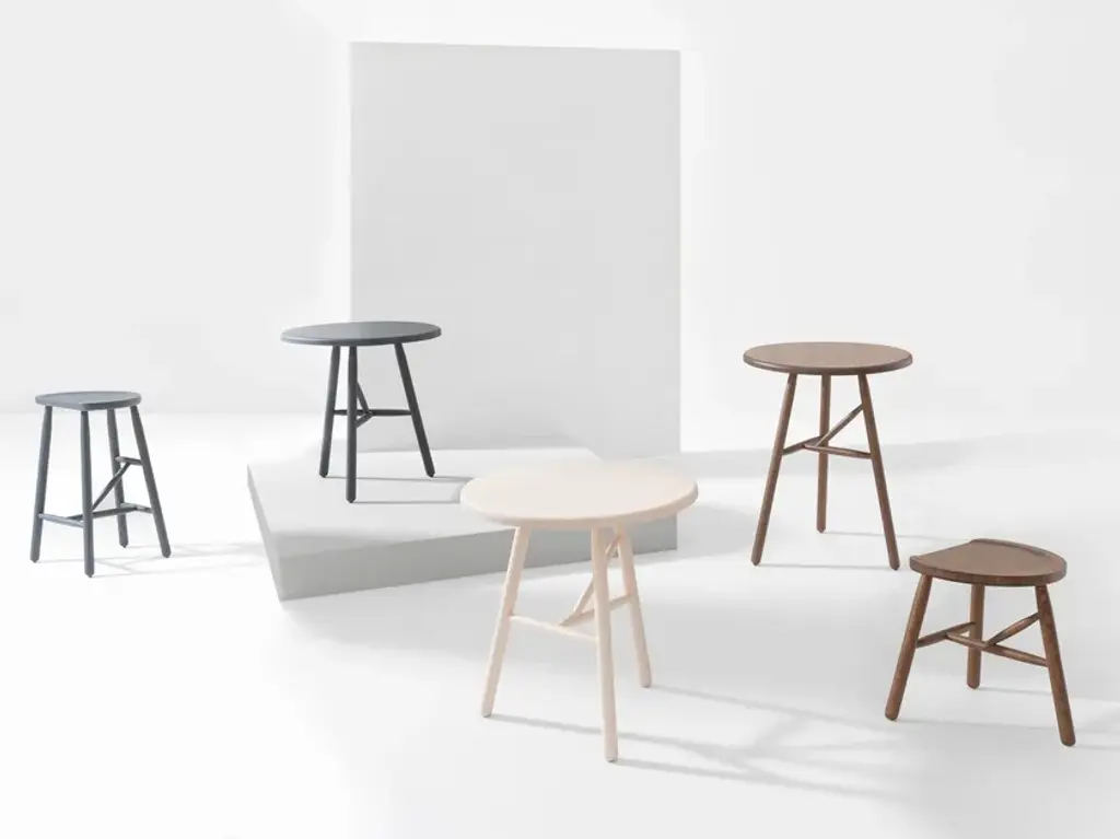 Puccio 710 is a low stool made of solid ash wood.Puccio is a collection developed from a reflection on milking stools—seats without design or designer that, due to their functionality, have endured unchanged through the centuries.Over time, it has evolved to include not only stools but also tables and chairs.Designed to furnish even the most confined spaces, it now features a lightweight, compact chair with a backrest completing the base.In addition to the ash wood version, which expresses the warmth of wood, the Puccio family is also available in steel.
