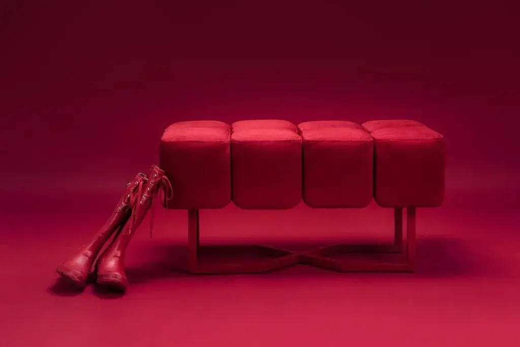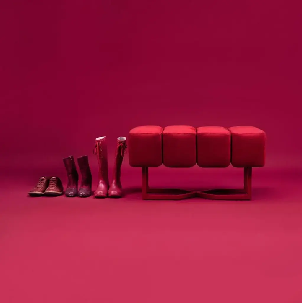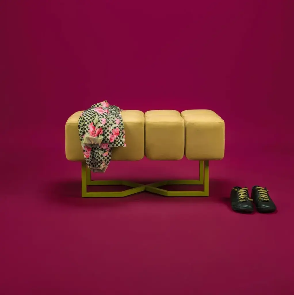 Puffy stool m by phormy dimensions: d 44 x w 88 x h 44 cm. Materials: upholstery, powder coated steel base. Different materials and sizes available. Puffy is softness and lightness dressed up in ten intriguing modules. Its usage is very wide. It will turn out great as a hallway seat, footrest by the sofa, in front of the bed in the bedroom or in the closet or even by the table, on the other hand as a modern and noncommittal piece of furniture in waiting rooms or offices if comes to public space. Basic coloring of puffy is based on combination of white with warm grey. Accent which gives more dynamic character on the whole is a module emphasized by the color, available in pear green or deep marine turquoise. Puffy received diamond of design 2016 award and must have 2019 at lodz design festival.