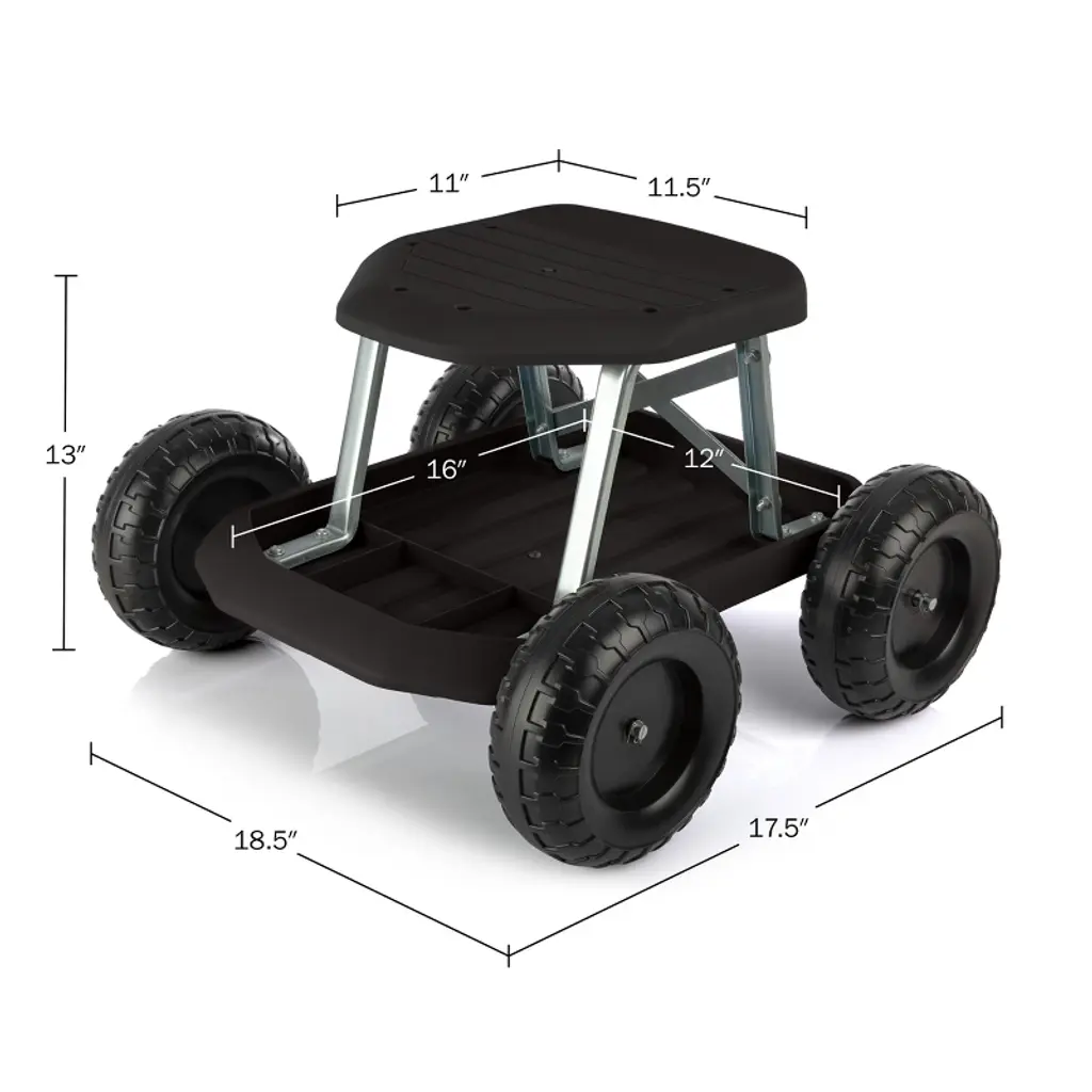 Make working in your yard more comfortable with the Garden Stool with Wheels by Pure Garden. The durable plastic and stainless-steel materials are built to stand up to harsh weather and long-term use, while the lightweight construction and sturdy wheels provide exceptional portability around the yard. The tool tray underneath the seat of this garden scooter keeps gardening tools organized and easily available. This rolling cart is ideal for both kids and adults, and it makes a great gardening gift for anyone with a green thumb.