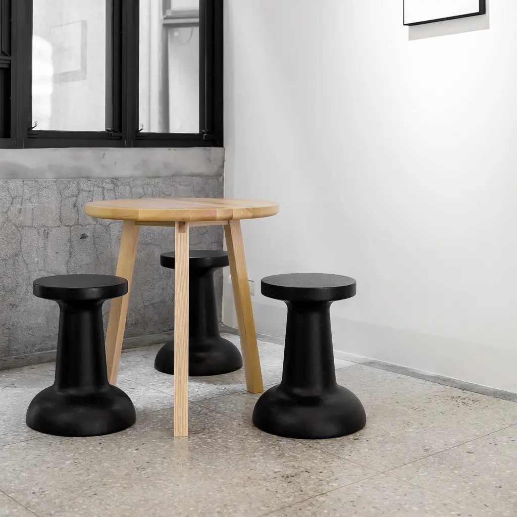 After its birth in 1900 by Edwin Moore, the push pin has come a long way from just tacking away documents and maps. Inspired by Edwin Moore pins shape, and blown the dimension up to create a playful interior element that’s flexible as it is fun. Notice the simple shape and explore the material at the same time. Characterized by an oversize familiar form and warm, natural cork, ‘Pushpin’ can be used both ways up; sit on the smaller surface or flip over to use as a coffee or side table. Pushpin is good to be a single side table beside a working desk, bedroom or sofa as well as practical to be a group of stools in a café, a restaurant garden, and other public spaces.