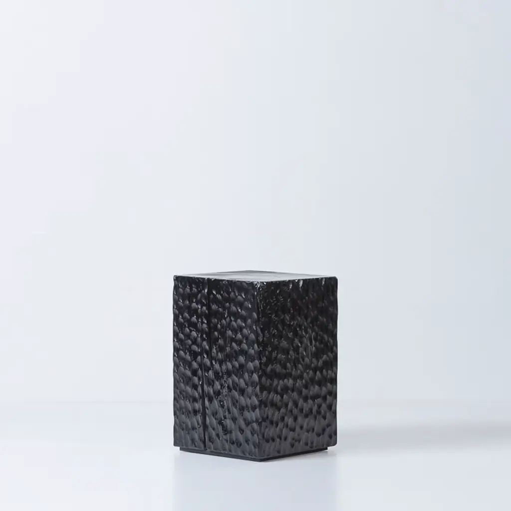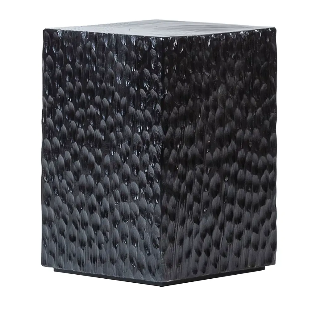 Rustic and artisan flair harmoniously coexist in this compact stool obtained by sectioning an authentic trunk of Douglas fir. Sporting a captivating texture minutely carved by hand, it flaunts a total-black finish of timeless elegance. Due to its exquisitely natural quality, each stool sports unrepeatable details stating its uniqueness.