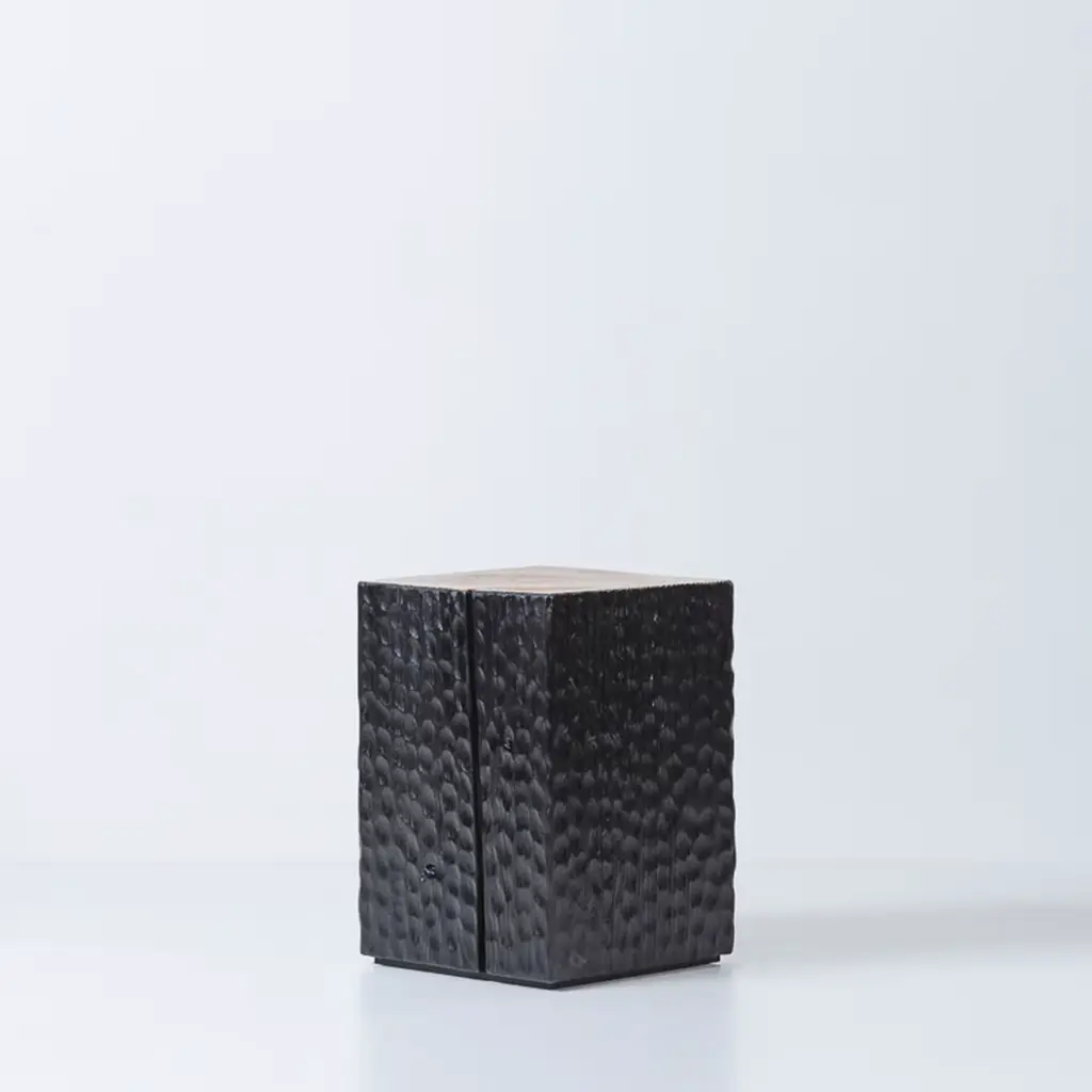 Refined carving expertise meets rustic flair in this singular stool obtained from a single trunk of Douglas fir. Perfected with transparent varnish, the seat stands in neat contrast with the refined total-black finish characterizing the sides and enhancing the minutely hand-carved texture. Explore different finishing options in the Artemest catalog.