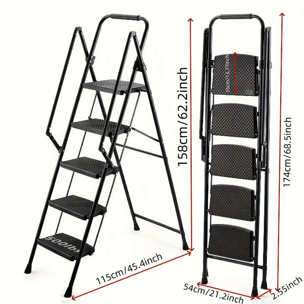 Racxily 5-step Ladder, Folding Ladder Stool, With Anti Slip Wide Pedals, Steel Ladder, With Safety Anti Slip Handle, Lightweight 300 Pound