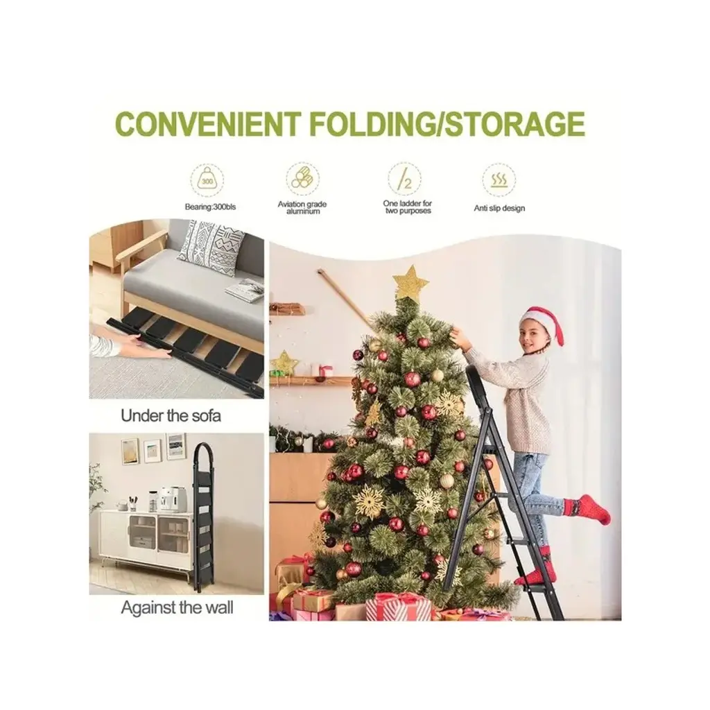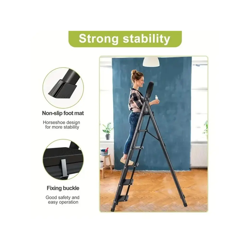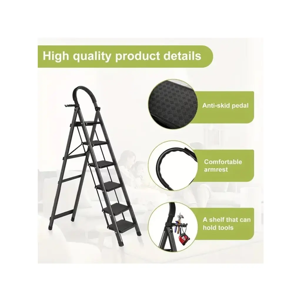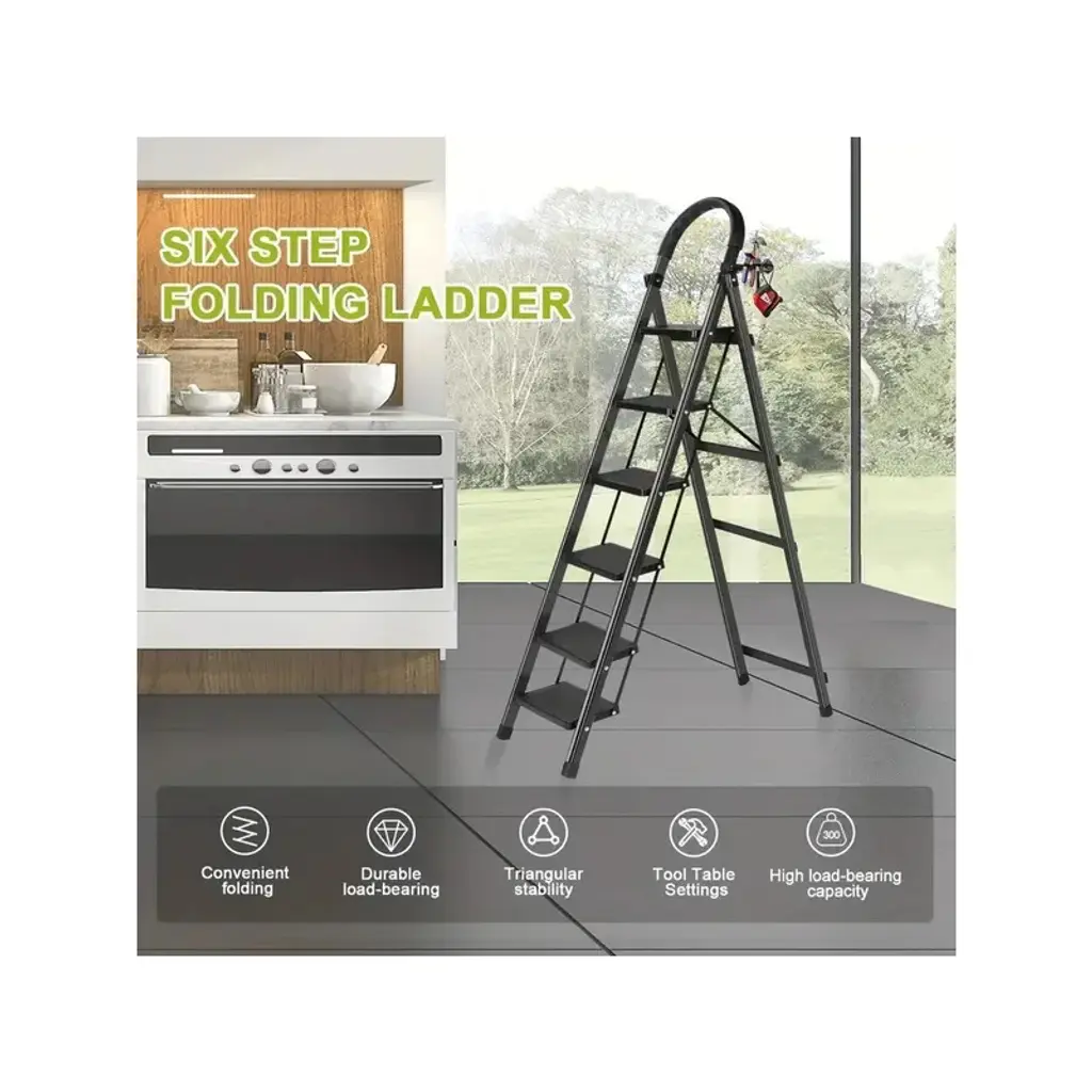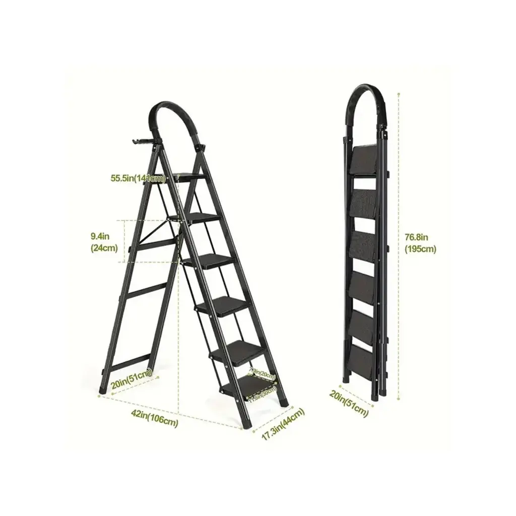 Upgrade your work efficiency with this 6-Step Heavy Duty Folding Ladder ¨C built for strength, safety, and convenience. With a 500 lbs weight capacity, this industrial-grade step stool is ideal for a wide range of tasks from painting and cleaning to accessing high shelves and performing repairs. Made with durable metal construction, it ensures stability and long-term reliability for both home and professional use. Featuring anti-slip pedals and feet, the ladder offers added traction and security, reducing the risk of slips. The wide steps provide ample standing room, while the lightweight, foldable design makes it easy to carry and store. Whether you're working in a warehouse, workshop, garage, or simply doing chores around the house, this ladder is a must-have accessory.