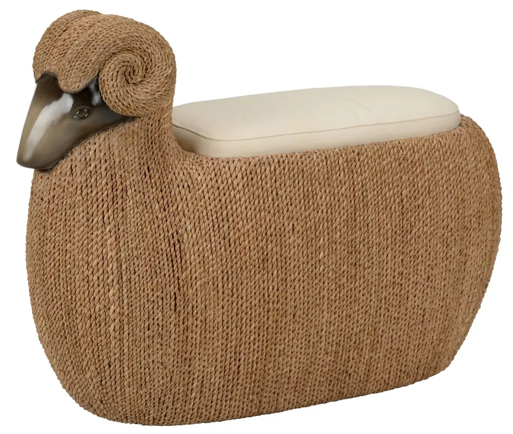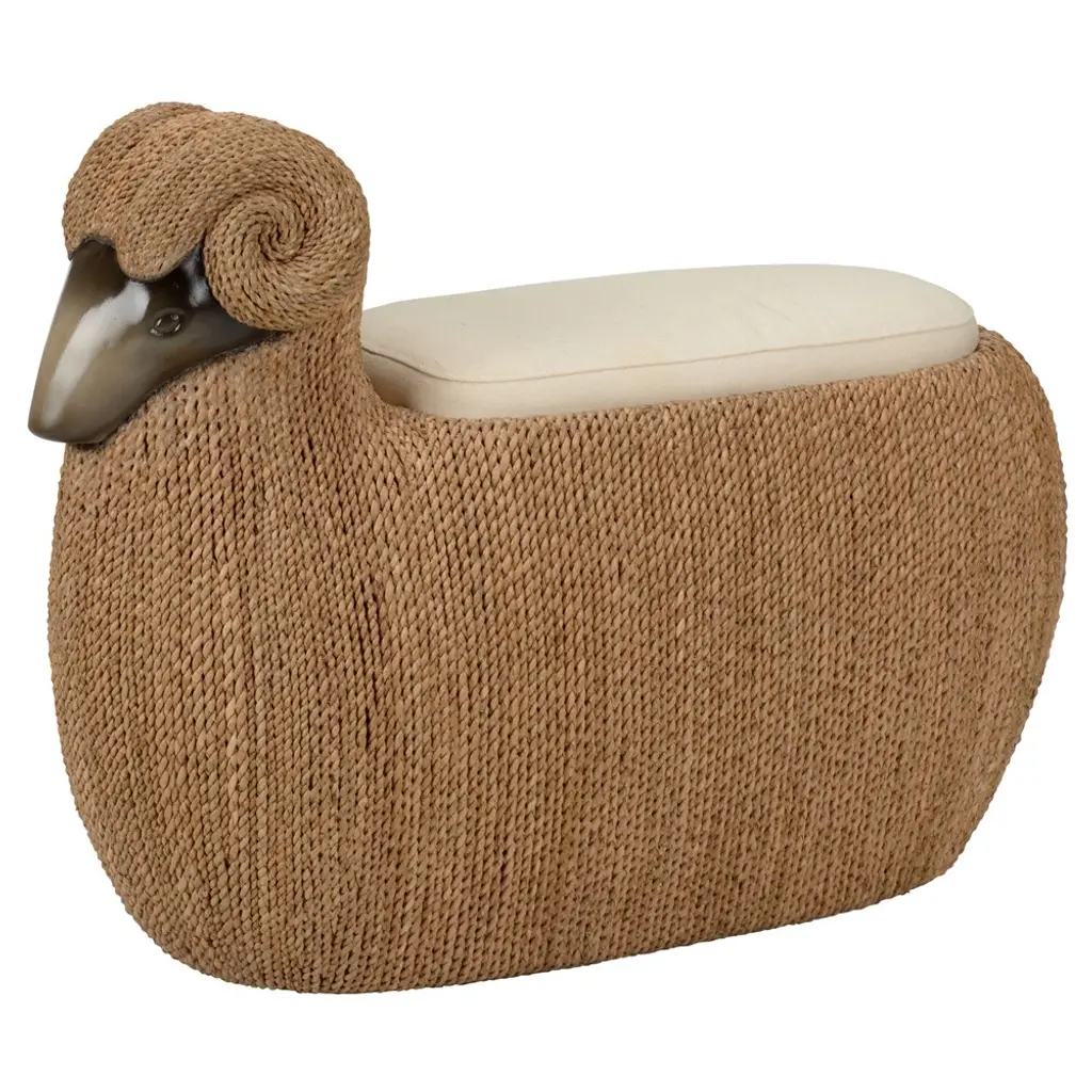 Raffaello Modern Classic Cream Woven Abaca Rope Ram Storage Stool