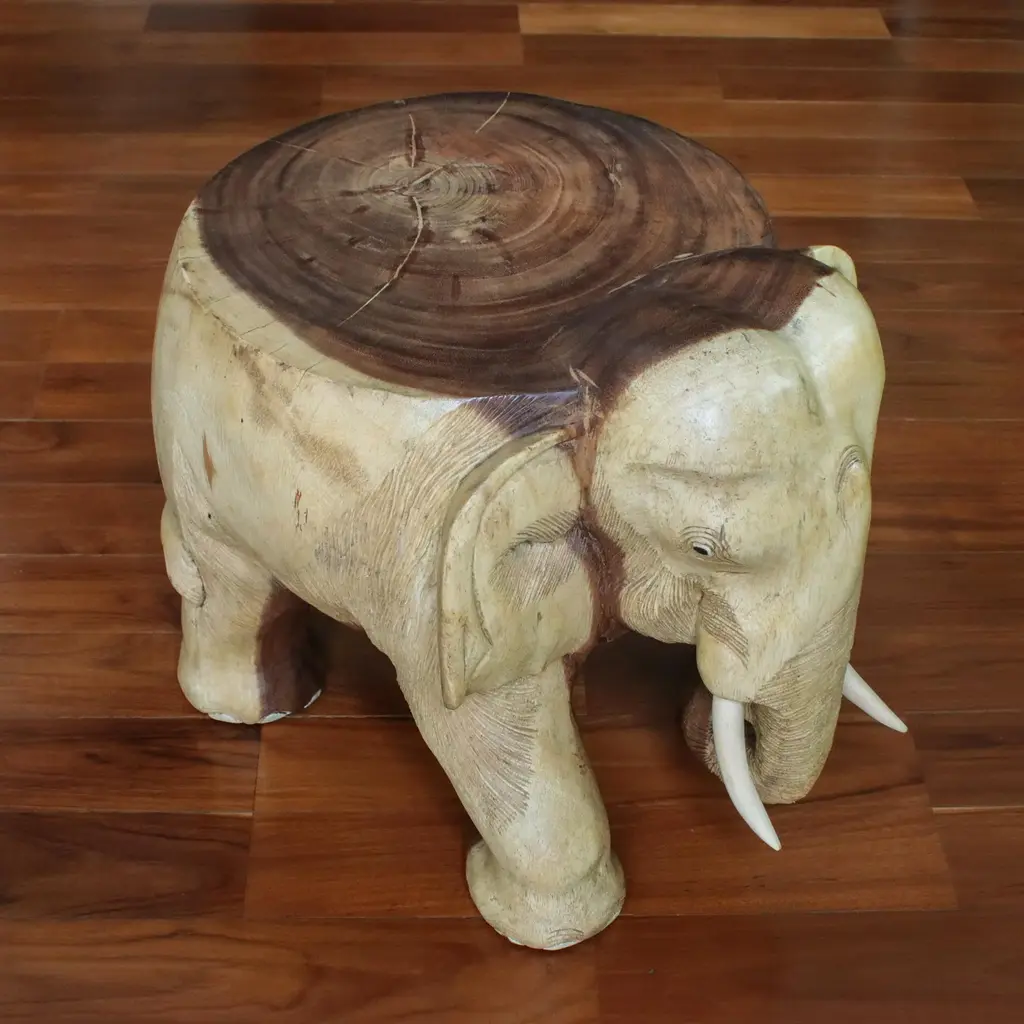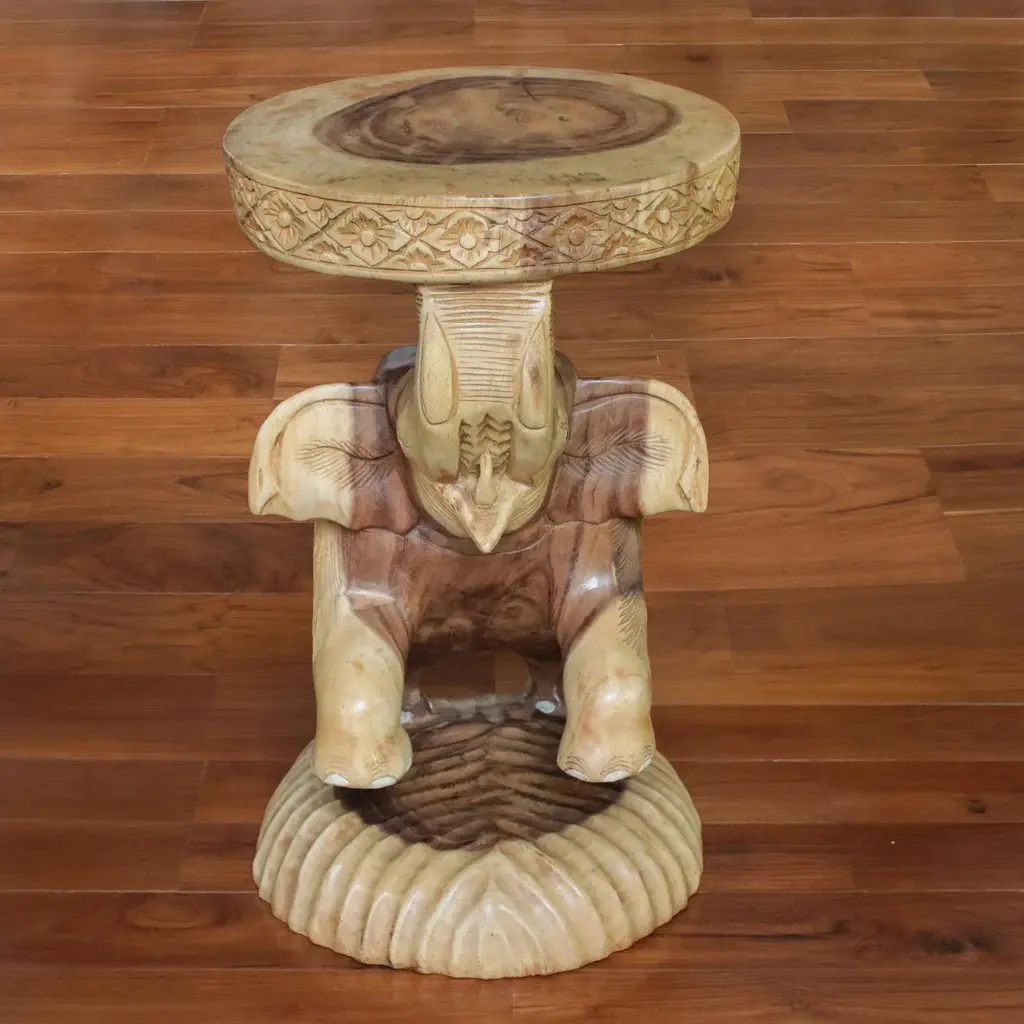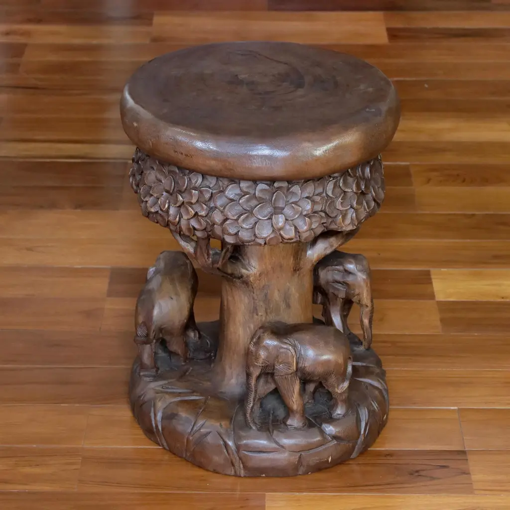 Raintree Wood Elephant Stool Crafted In Thailand- Hello Elephant