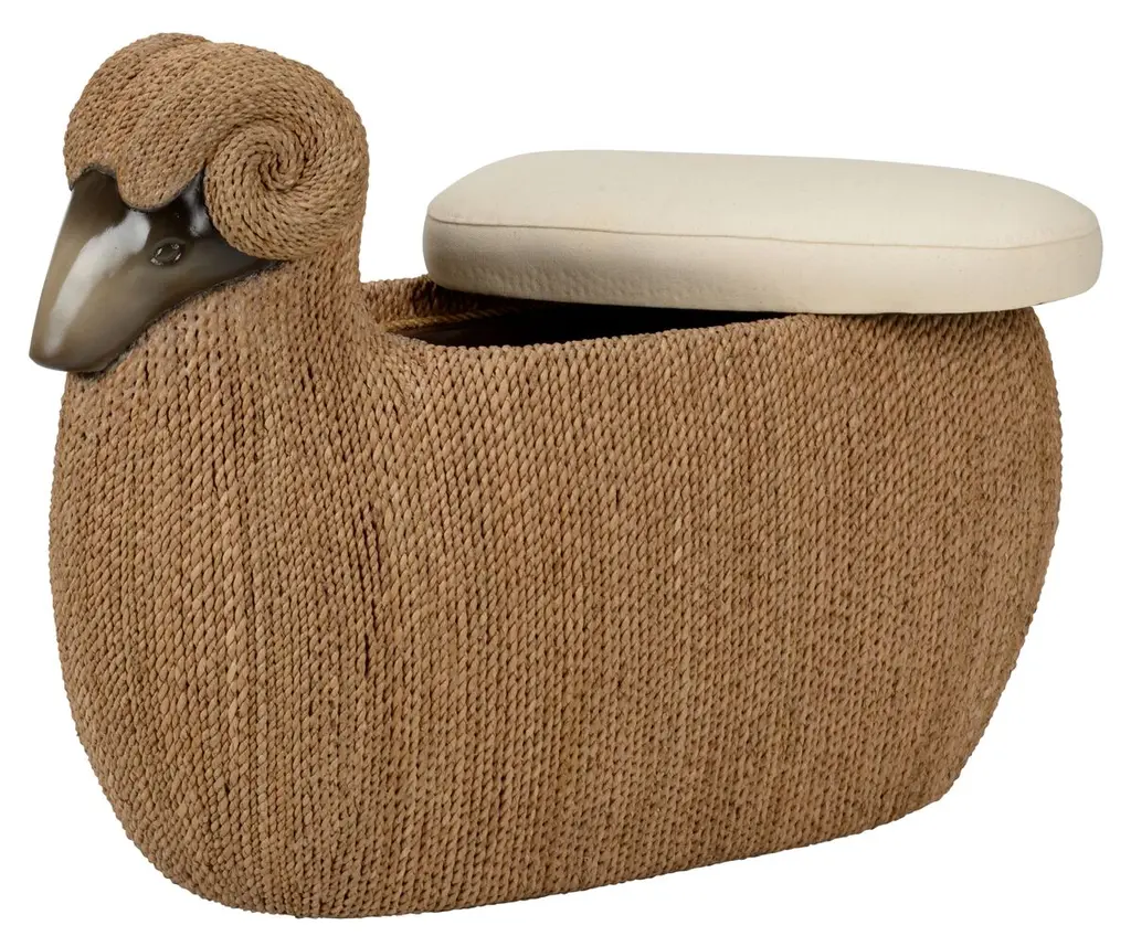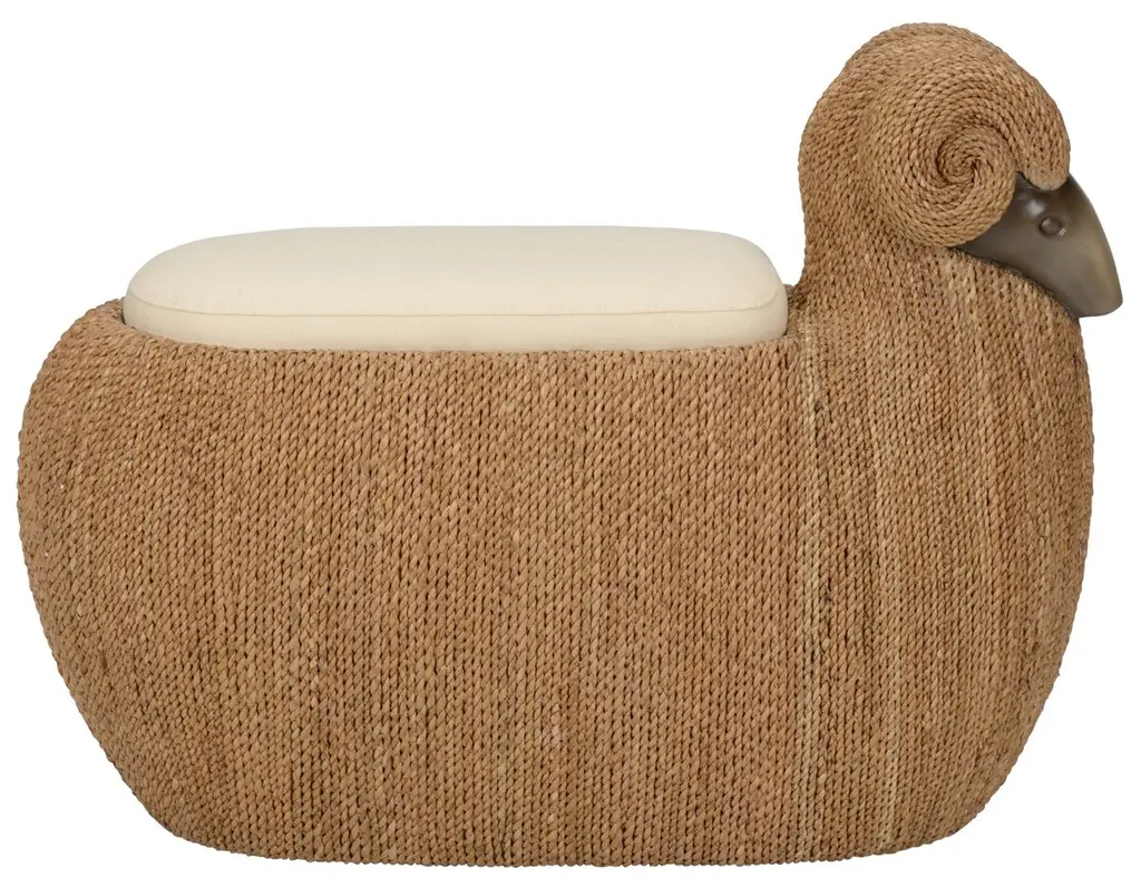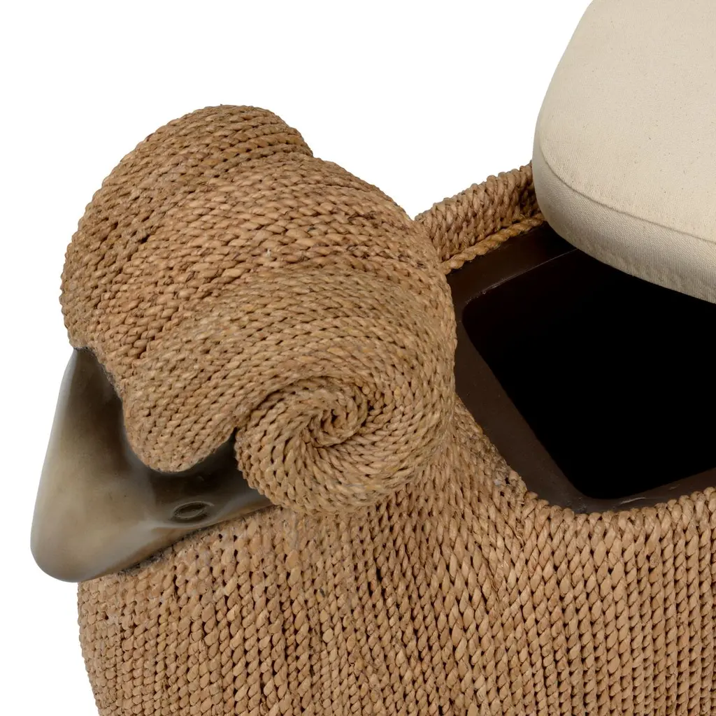 Whether used as a study footrest, extra seating and storage or a unique accent, the ram stool will add a fun element to any room. The frame is made from braided seagrass, while the seat is upholstered with a cream muslin cloth to give a natural feel.