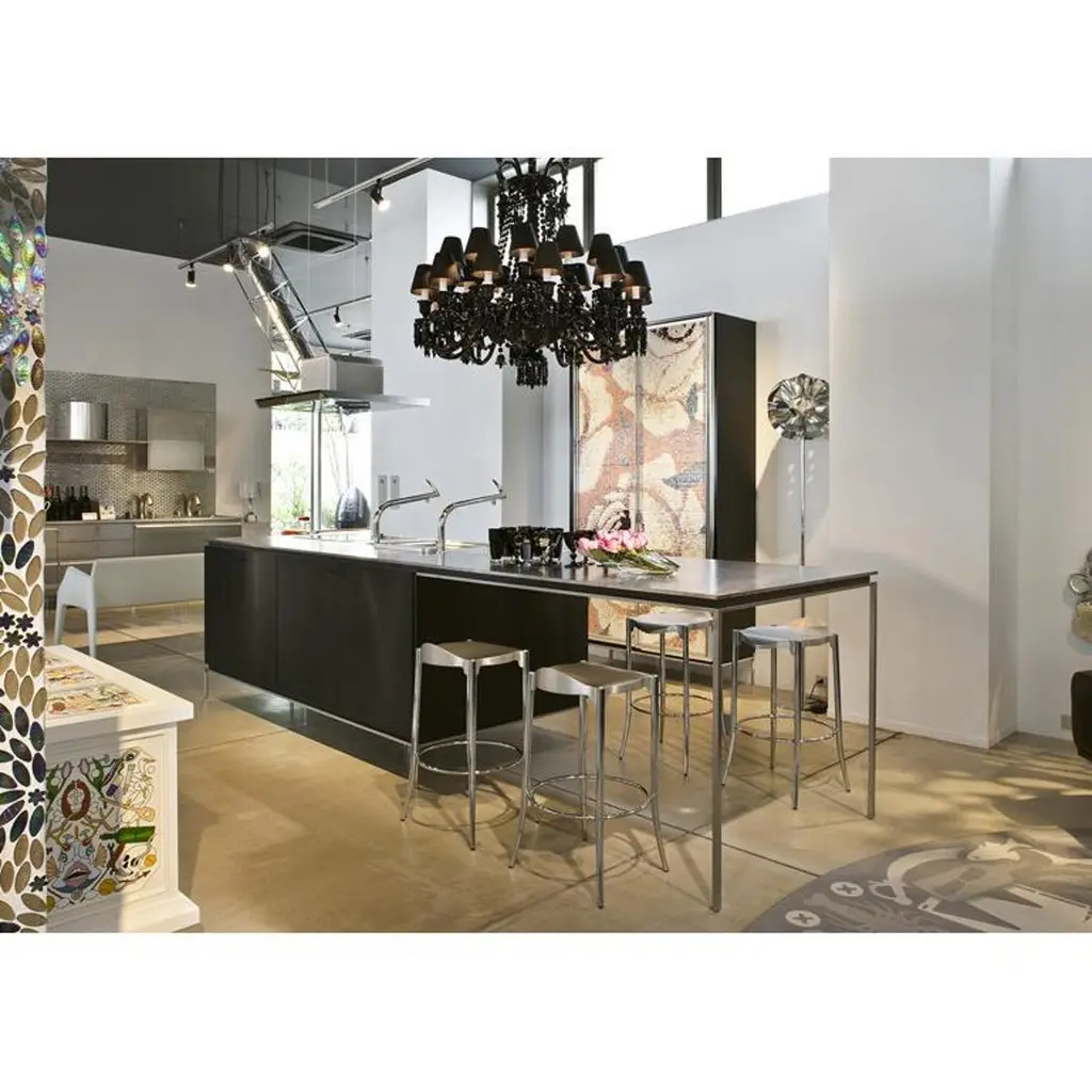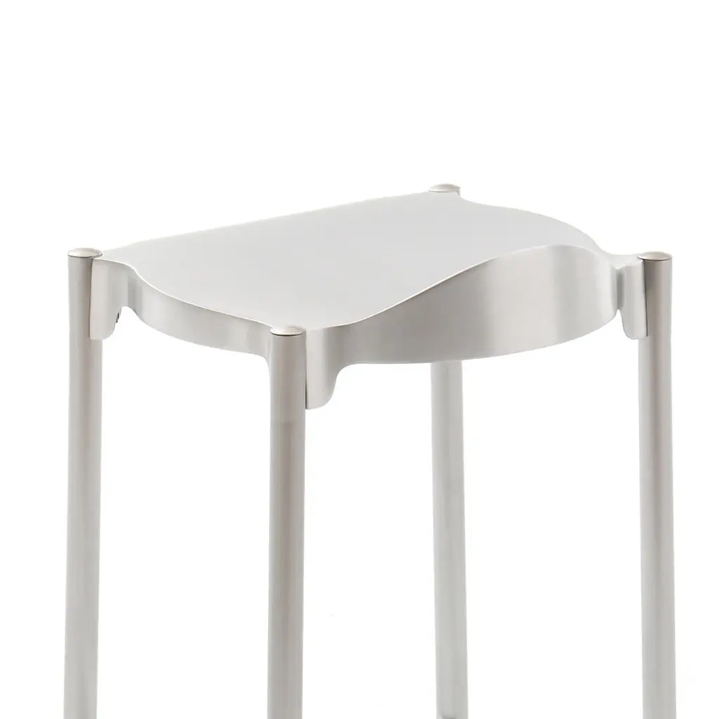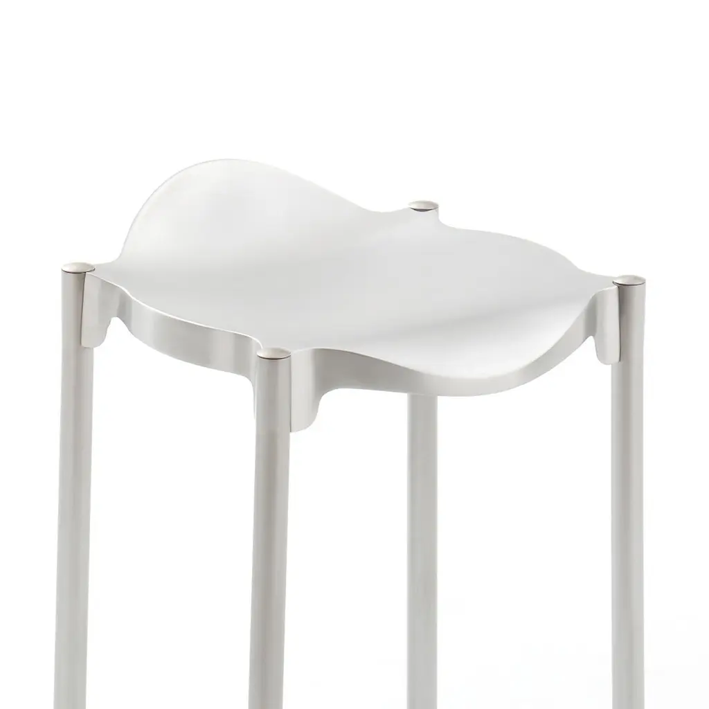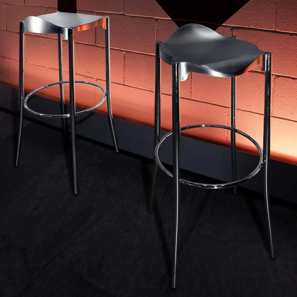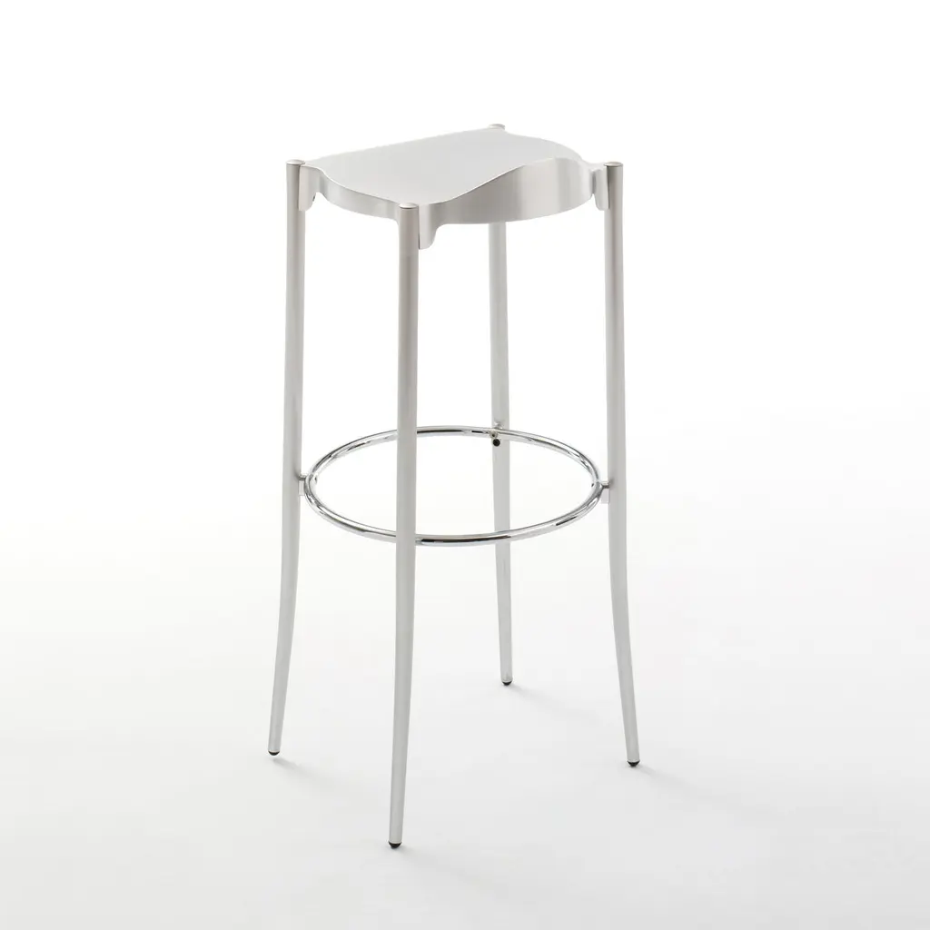 Structure in chromed steel tube. Seat in cast AG3 aluminium scotch polished or anodized silver grey. It can be upholstered in black leather.Measures: 38 x 39 x H 80 cm.Structure in chromed steel tube.Seat in cast AG3 aluminium scotch polished or anodized silver grey. Standard LDPE beads.Blued screws iron.It can be upholstered in black leather.Year: 2008.