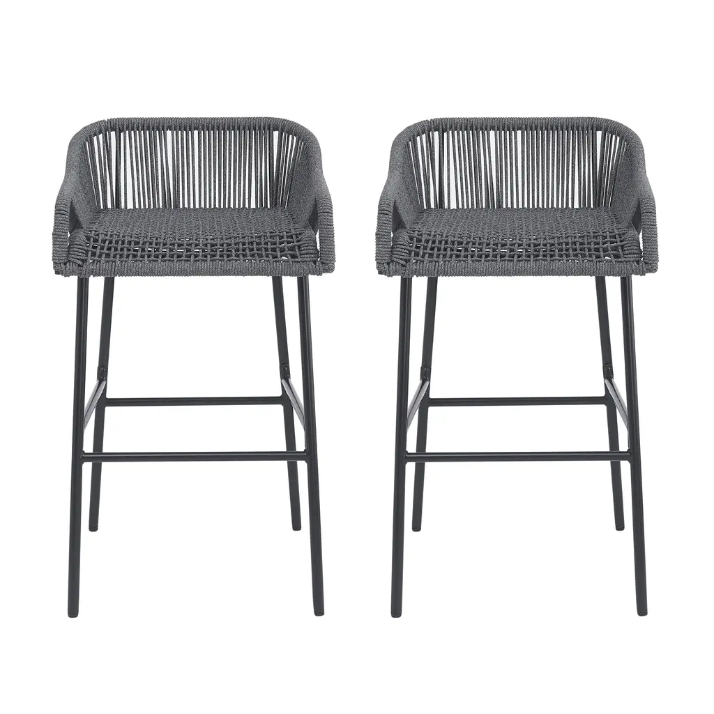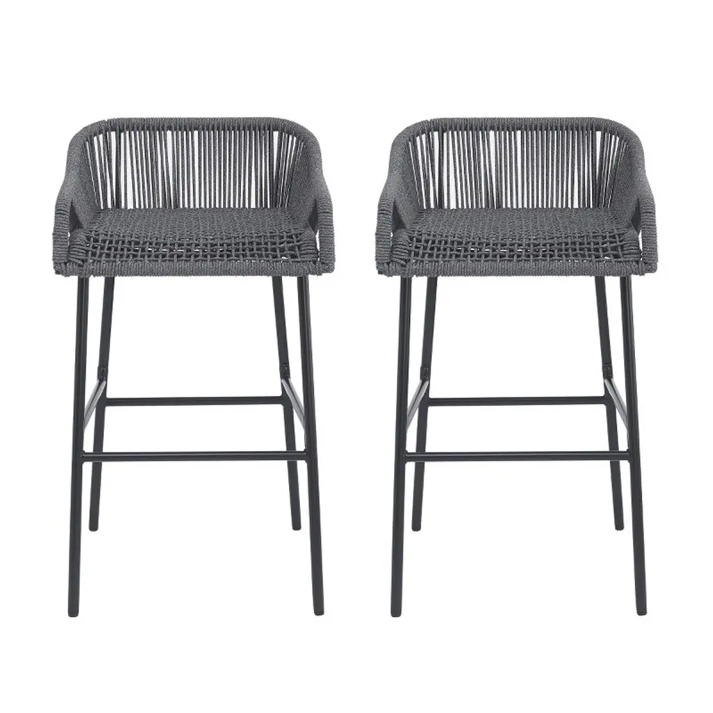 Rattan Black Woven + Black Metal 26" Counter Height Stool With Back Set Of 2