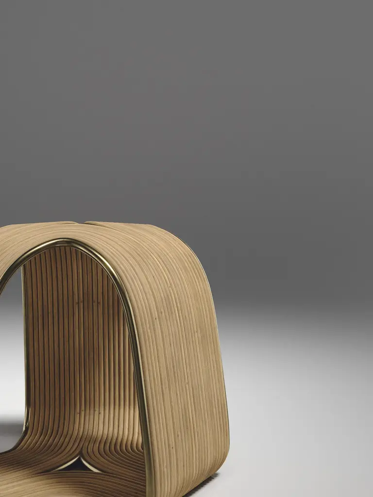 Rattan Stool With Bronze-Patina Brass Details By R&y Augousti