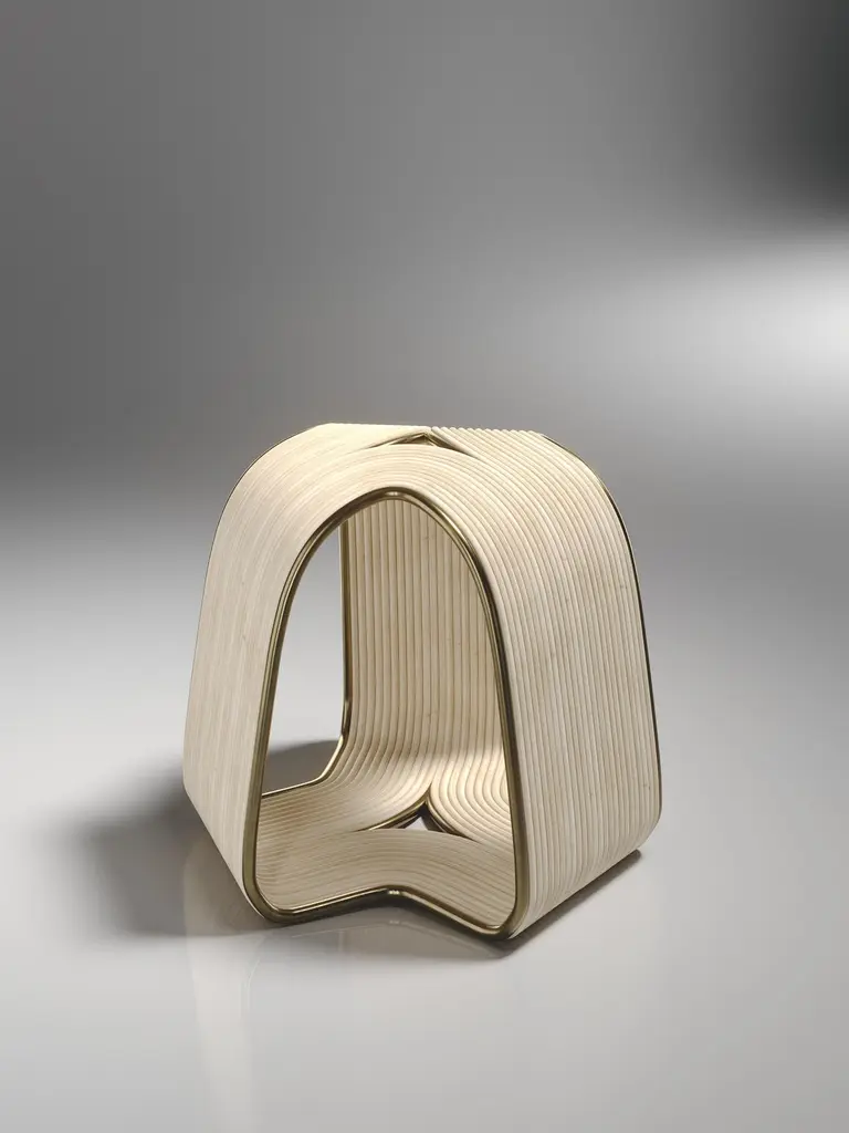 Rattan Stool With Bronze-Patina Brass Details By R&y Augousti